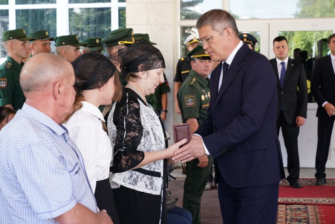 В траурной церемонии принял участие Глава Башкортостана Радий Хабиров, родные, близкие, друзья и земляки воина.