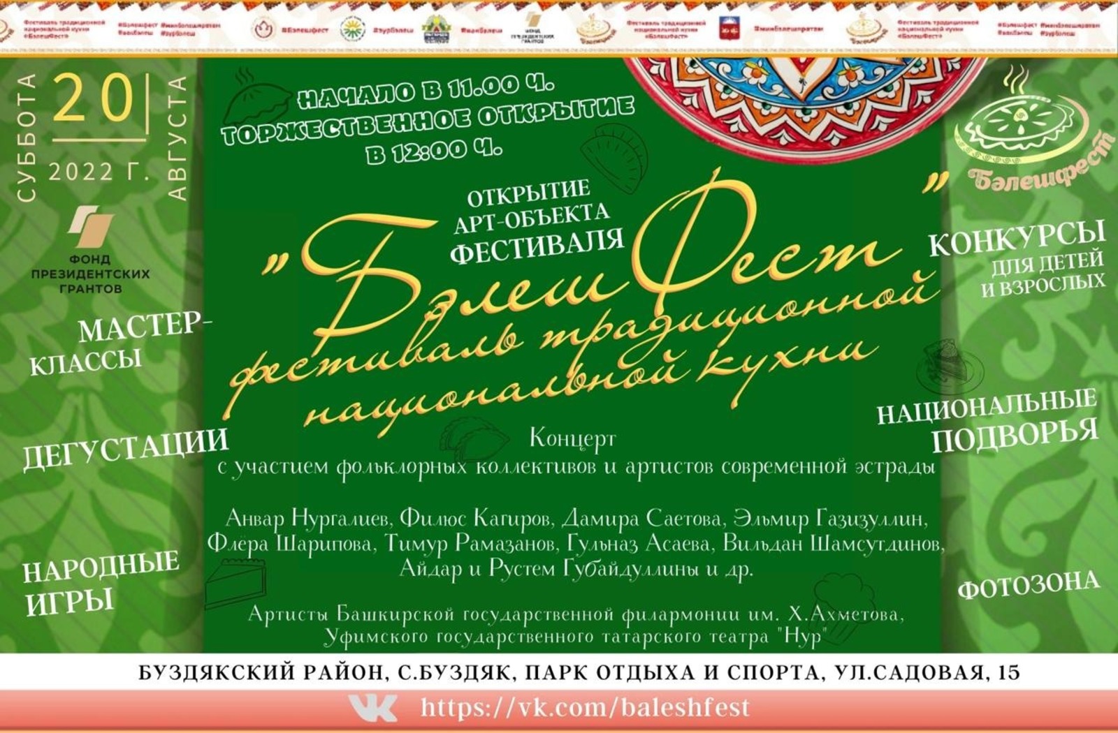 В субботу, 20 августа в парке спорта и отдыха села Буздяк, Буздякского района Башкирии состоится фестиваль традиционной национальной кухни «БэлешФест-2022». Об этом напоминают организаторы.
