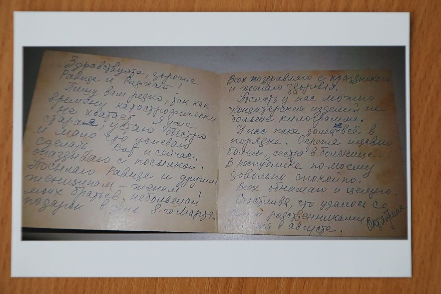 Резида Шамилевна показывает нам семейные фотографии и копии открыток, присланные второй женой Шаймуратова родственникам.