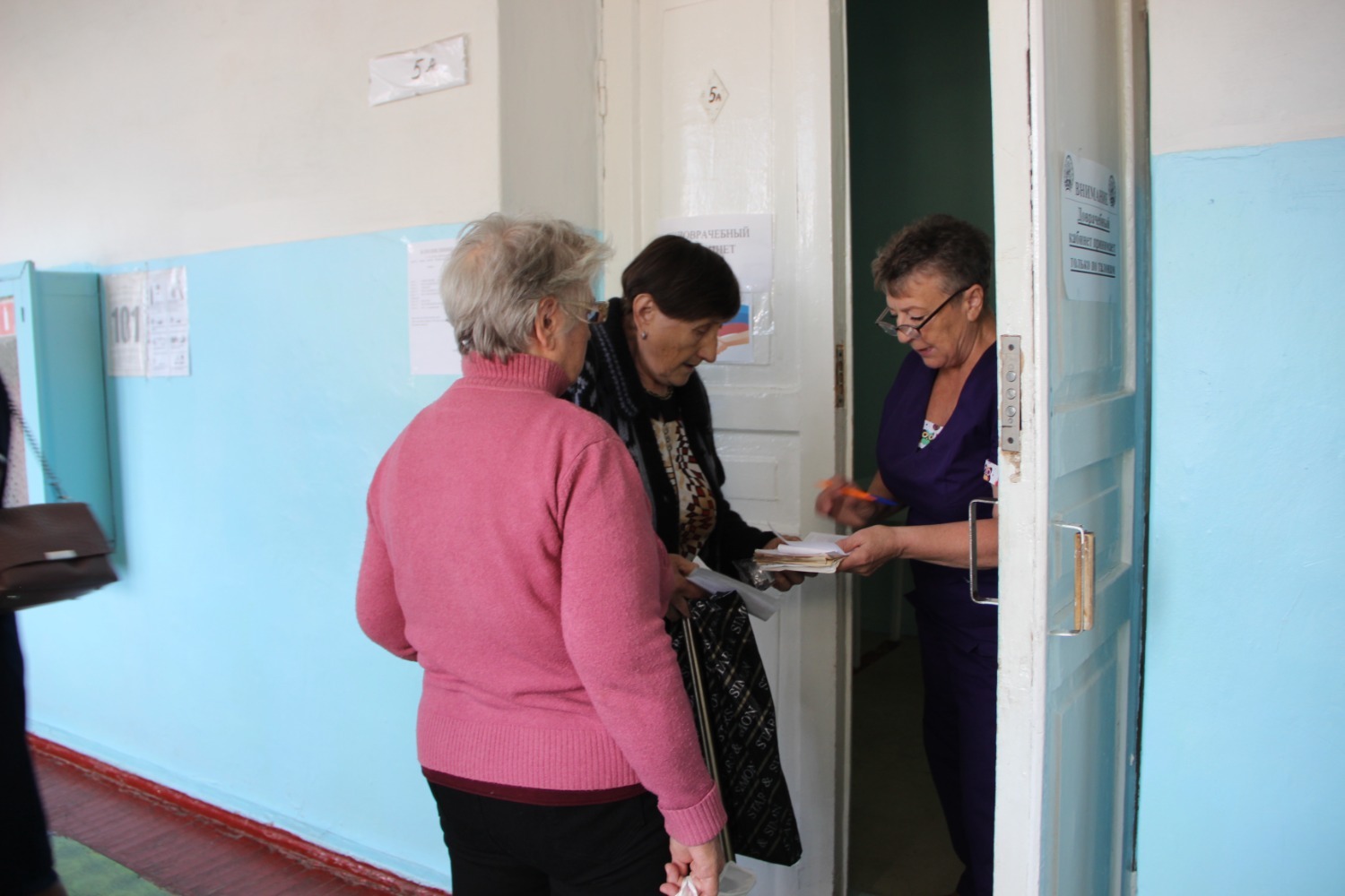 Пациентам, прежде чем попасть к врачу, необходимо пройти осмотр у медсестры доврачебного кабинета Зульфии Булатовой. Она проводит кардиограмму, измеряет температуру, давление, фиксирует индекс массы тела и после этого выписывает направления на анализы.