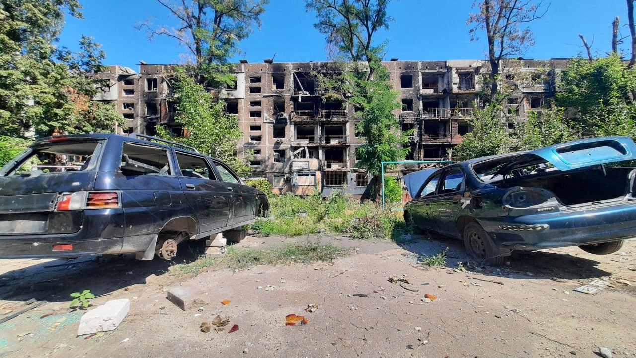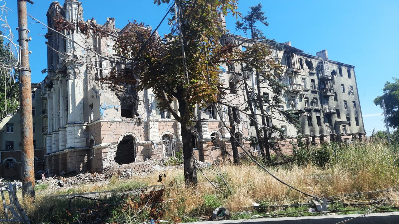 «Во время летней месячной командировки мы много времени провели в Луганской Народной Республике, побывали в городах Рубежное и Северодонецке, которые значительно пострадали от бомбежек ВСУ. В Рубежном до 2014 года проживало более 60 тысяч человек, сейчас там проживает всего 18 тысяч, в основном это пожилые, которым некуда было уезжать. Вся инфраструктура города практически уничтожена, не было электричества, водоснабжения. Питьевой водой и продуктами питания их обеспечивают гуманитарные конвои МЧС России. На освобожденные территории нас сопровождали военные, потому что туда едешь через блокпосты. Командиром группы сопровождения был подполковник народной милиции ЛНР с позывным «Князь». Он сам родом из Рубежного и не был в нем с 2014 года после госпереворота на Украине. В мирное время он работал преподавателем ОБЖ в местном техникуме. Он нам показал, где жил и работал.