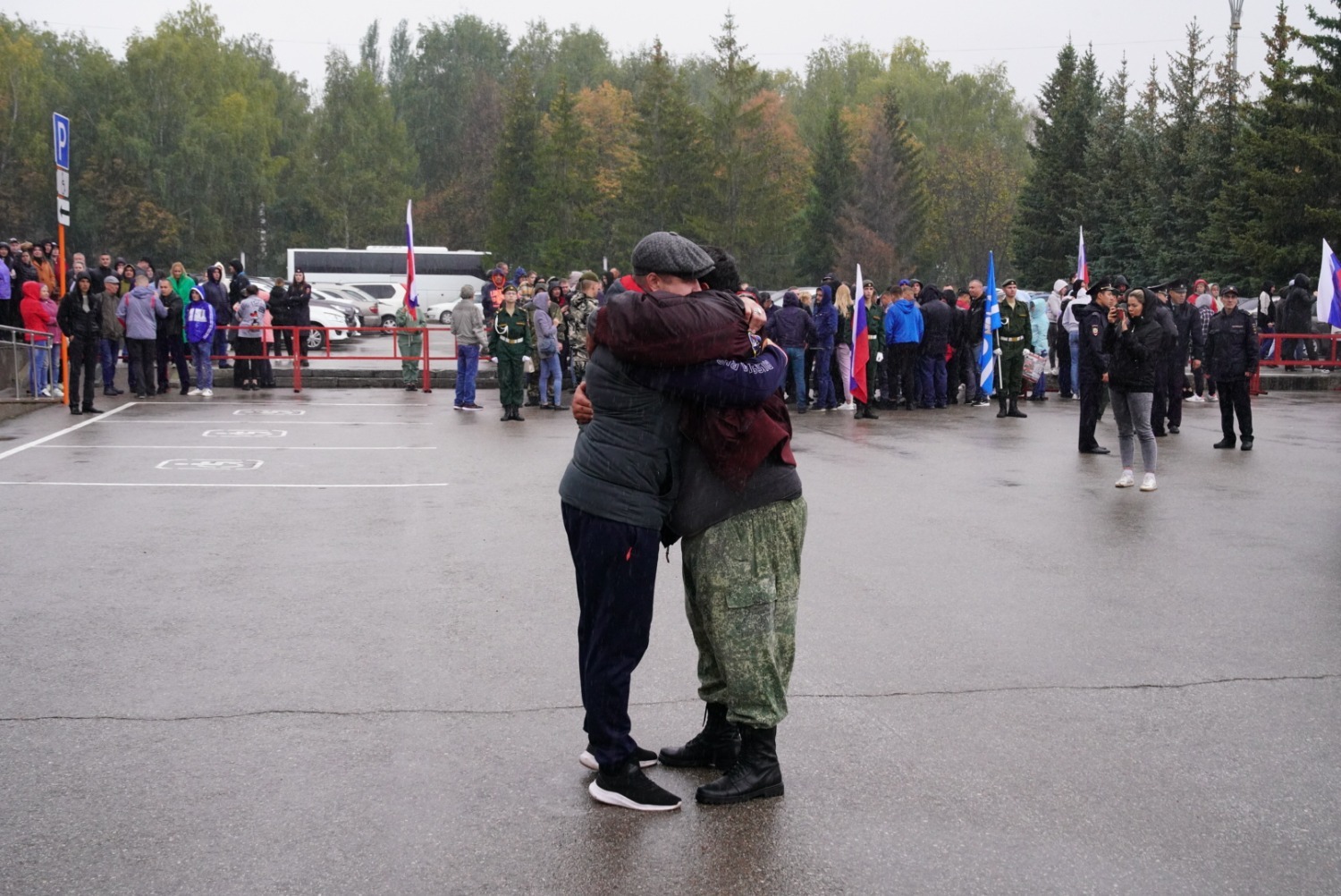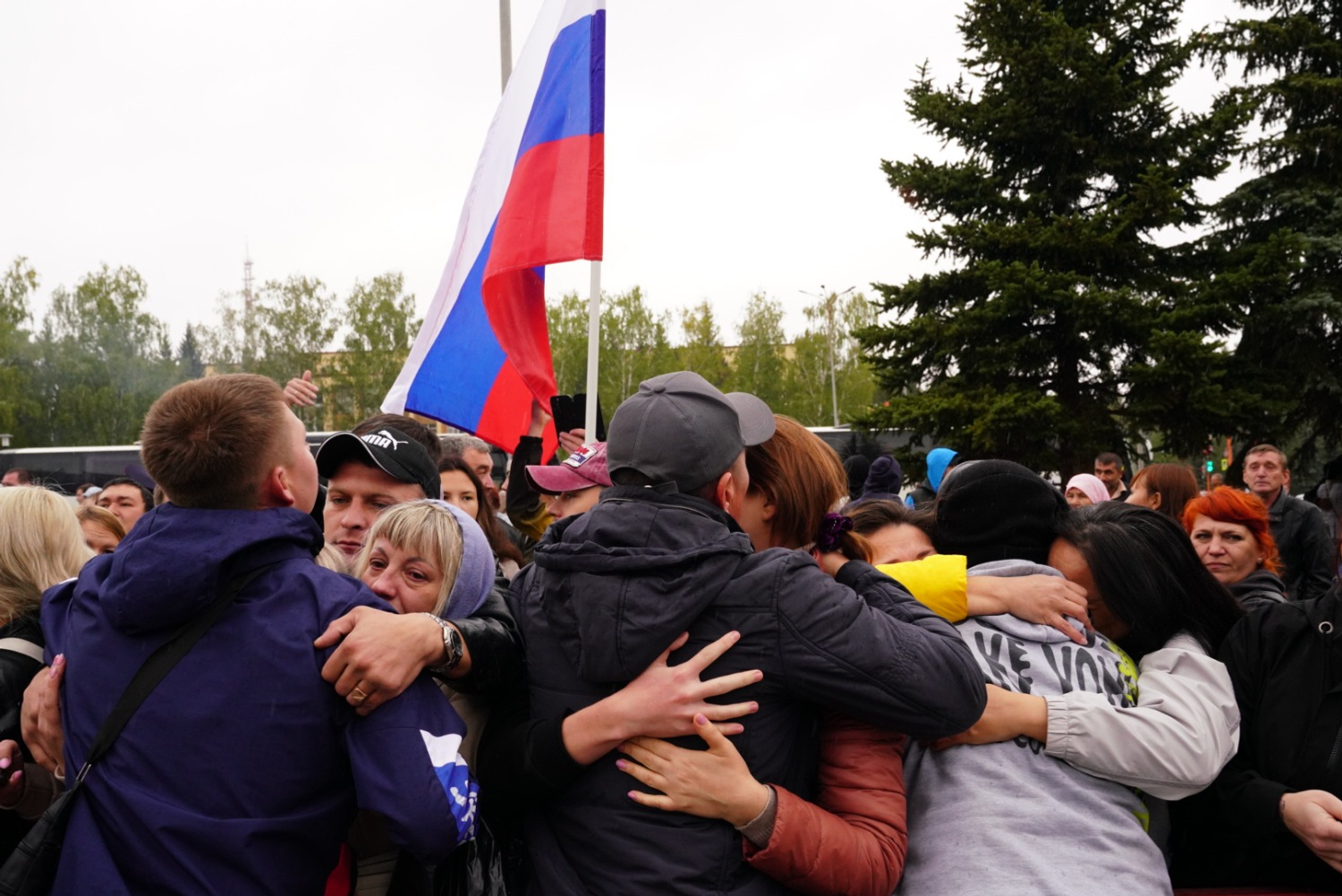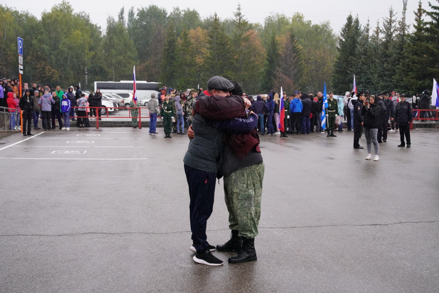 Сегодня на главной площади перед городским дворцом культуры Стерлитамака собрались родные, друзья и коллеги, которые пришли провожать своих сыновей, мужей, братьев.