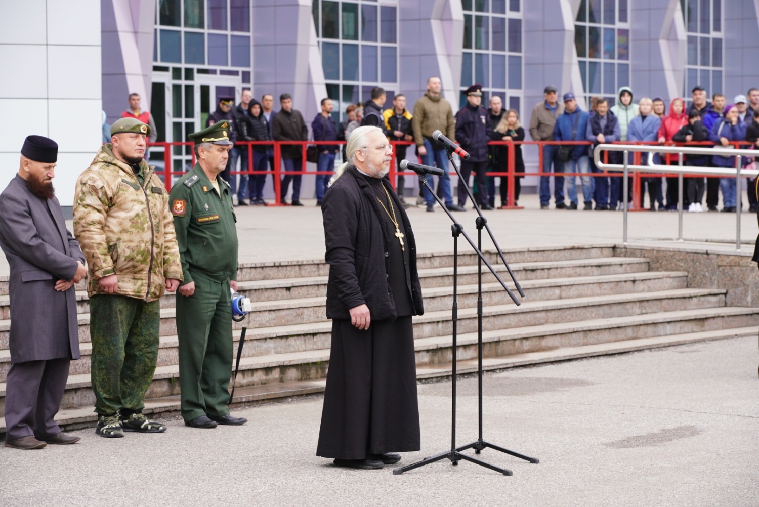Протоирей настоятель Богородице-Казанского собора Евгений Мышкин подчеркнул, что ребята идут выполнять священный долг и защищать от сил зла свои семьи, своих жен, матерей, сестер.