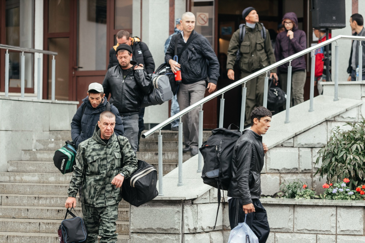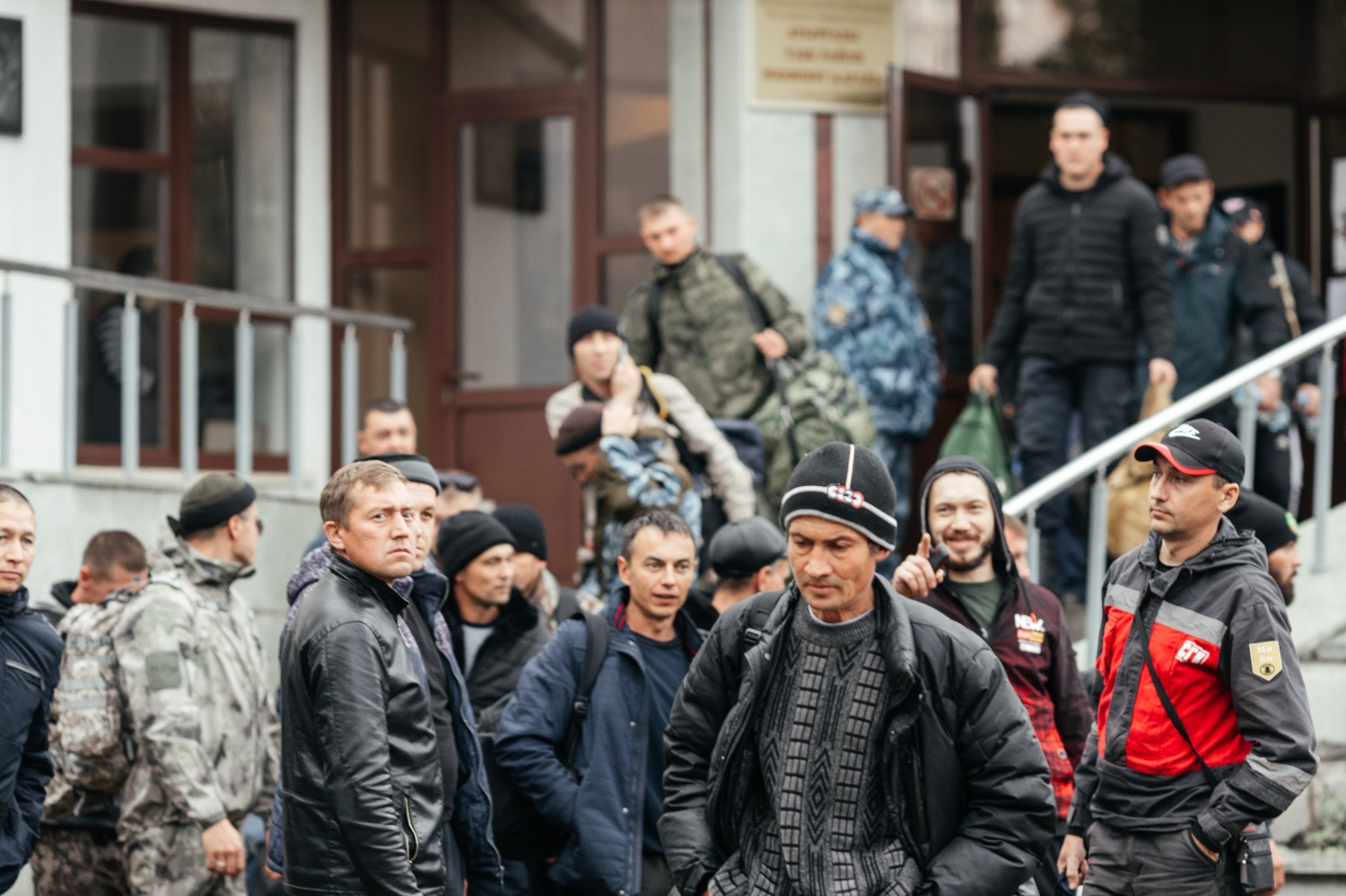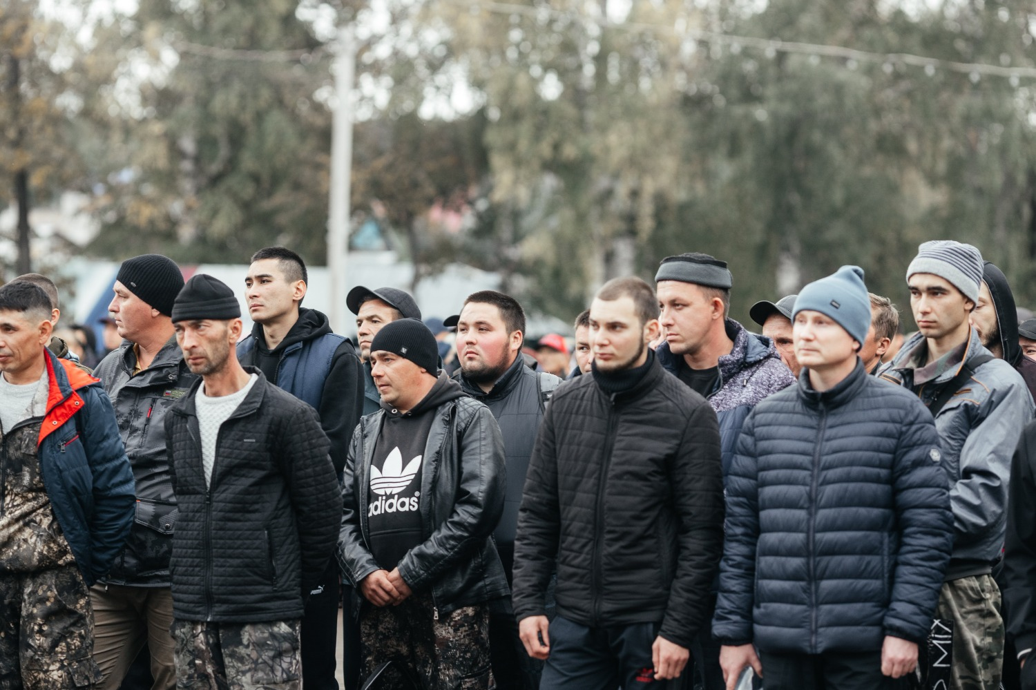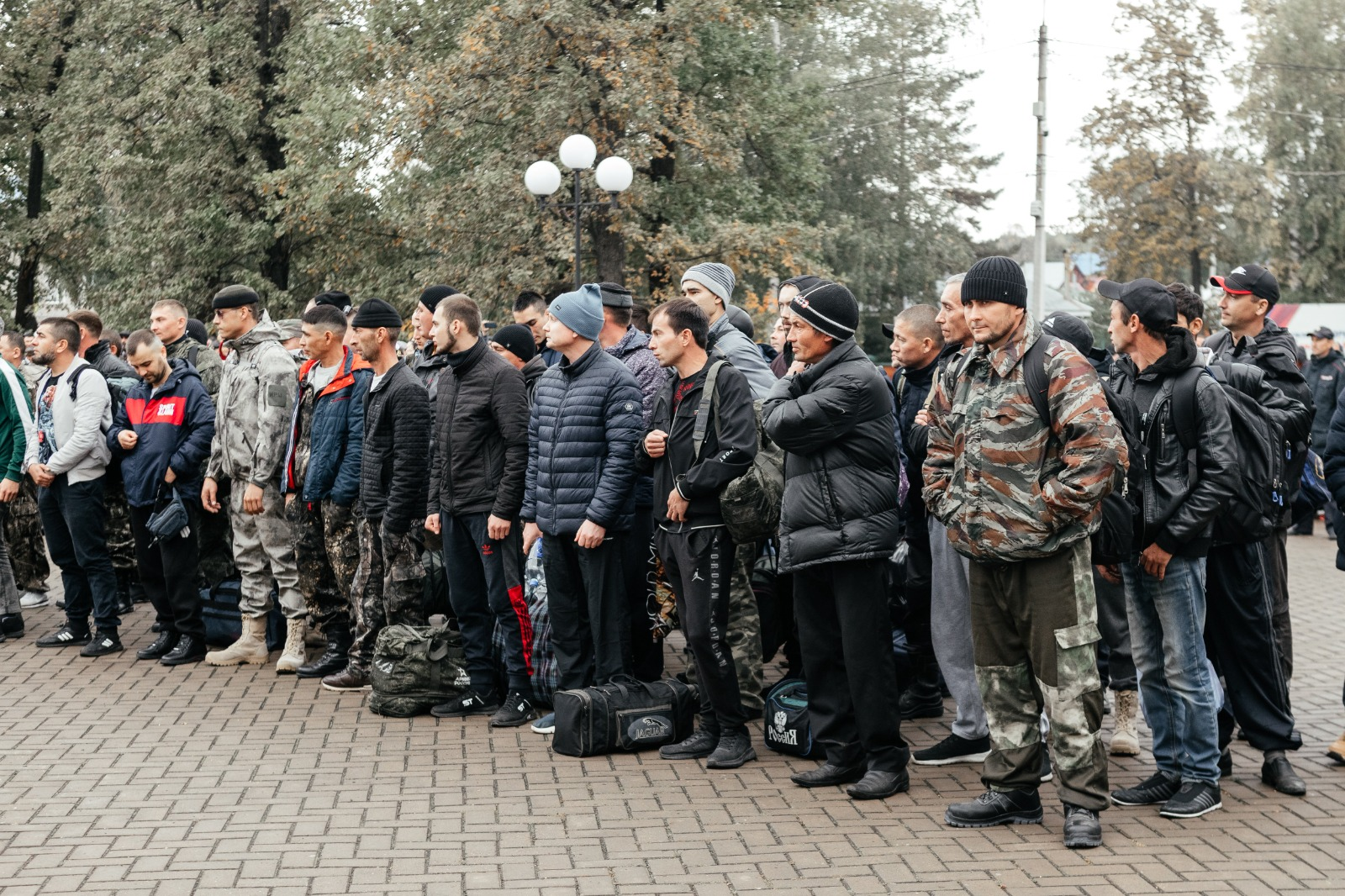 Автобусы с мобилизованными отправились в путь под мелодии военных песен в живом исполнении духового оркестра.