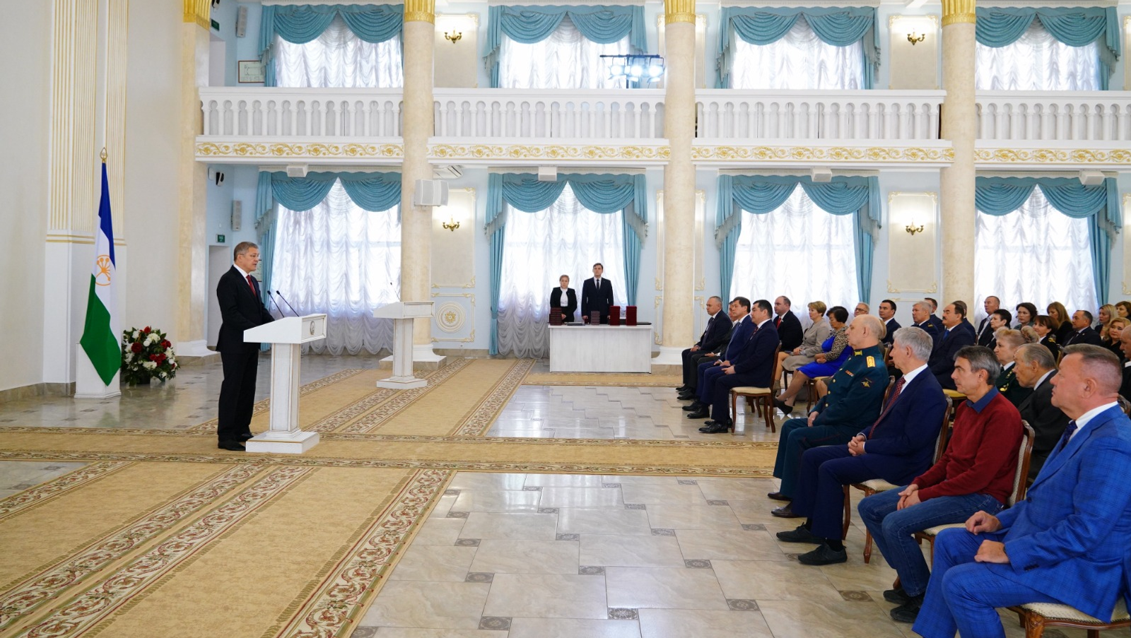 Всего из рук Главы Башкортостана сегодня государственные награды России и республики получили более 70 лучших тружеников региона.