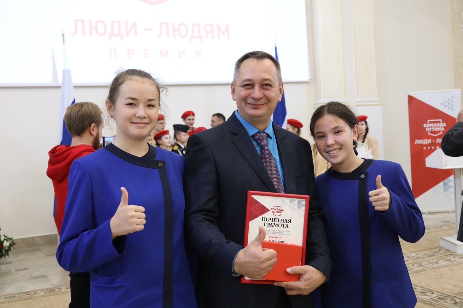 «Быть в команде Президента России – это большая честь и ответственность. С нашим Верховным главнокомандующим мы победили международный терроризм на Северном Кавказе, сегодня наши ребята самоотверженно борются с нацизмом на территории Украины. Любовь к Родине закладывается в юном возрасте и она будет в вашем сердце всегда», - сказал Альфит Нигаматьянов, обращаясь к шаймуратовцам, кадетам и юнармейцам, которые также присутствовали на церемонии вручения премии.