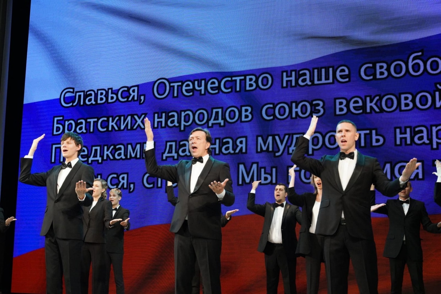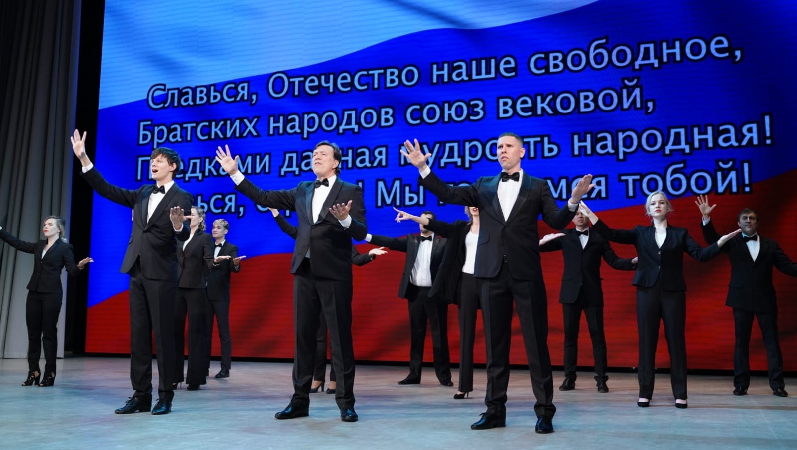 Гимн Российской Федерации в исполнении Московского театра мимики и жеста и студии жестового пения «Шанс» уфимского Дома культуры глухих стал особенным и его следует посмотреть отдельно.