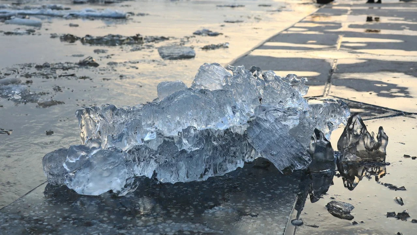 Толщину можно определить визуально: безопасным считается лед голубого или зеленого цвета, в 2 раза менее прочным — белый, а на льду серого, матового или желтого оттенка находиться категорически запрещено.