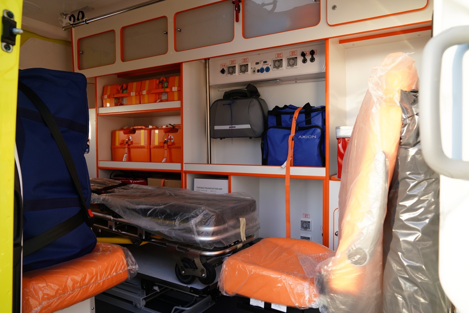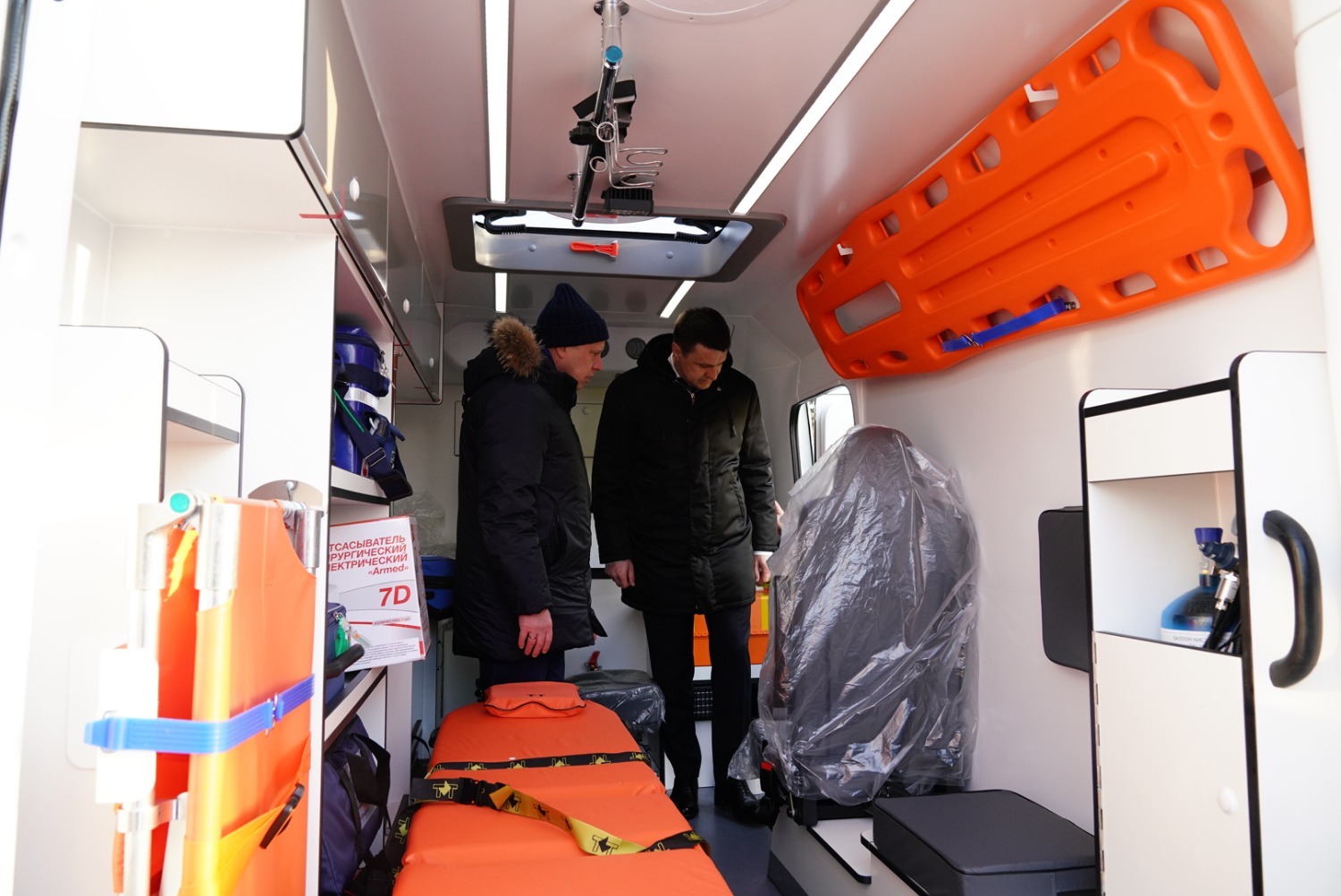 Автомобили оснащены всем необходимым оборудованием для оказания медицинской помощи и транспортировки экстренных больных. Каждая машина укомплектована дефибриллятором, электрокардиографом с возможностью регистрации ЭКГ, портативным пульсоксиметром, аппаратом управляемой и вспомогательной искусственной вентиляции легких, экспресс-измерителем концентрации глюкозы в крови и другим медицинским оборудованием в соответствии со стандартами оснащения.
