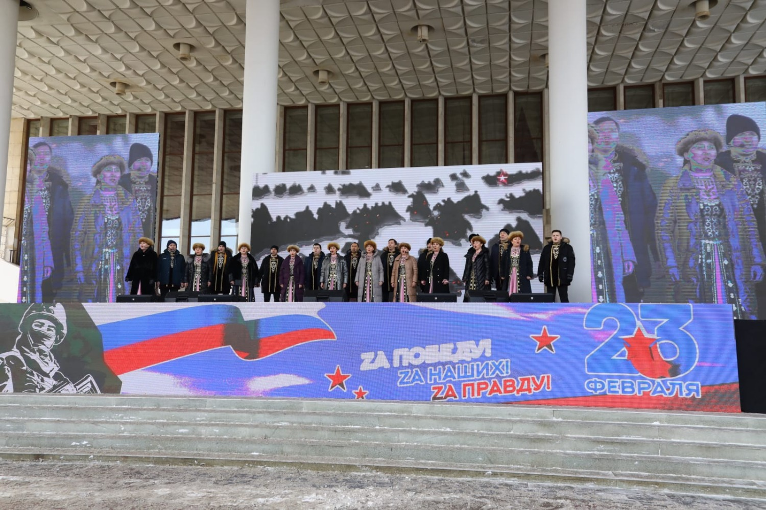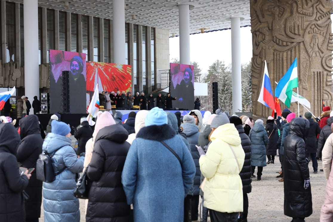 В Уфе на площади имени Ленина начался митинг-концерт, посвященный Дню защитника Отечества и поддержке российских военнослужащих, участвующих в специальной военной операции. На площадке перед Русским драмтеатром собралось несколько тысяч человек.