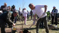 А мы сегодня в такой солнечный день давайте все вместе посадим деревья, которые через какое-то время вырастут и зашумят. Здесь будет очень-очень красиво. Спасибо всем за участие в этой акции».
