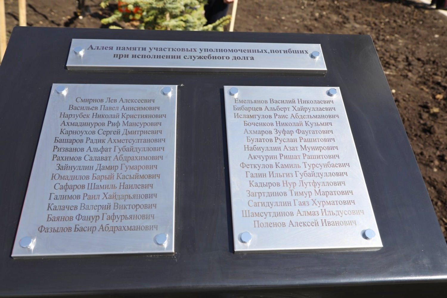Открытие аллеи памяти состоялось на бульваре Назара Наджми в Кировском районе столицы Башкирии. В ней высажены 30 елей, каждая из которых посвящена одному из погибших стражей порядка. Деревья имеют персональный QR-код. Отсканировав его, можно узнать, какой подвиг совершил сотрудник органов внутренних дел.