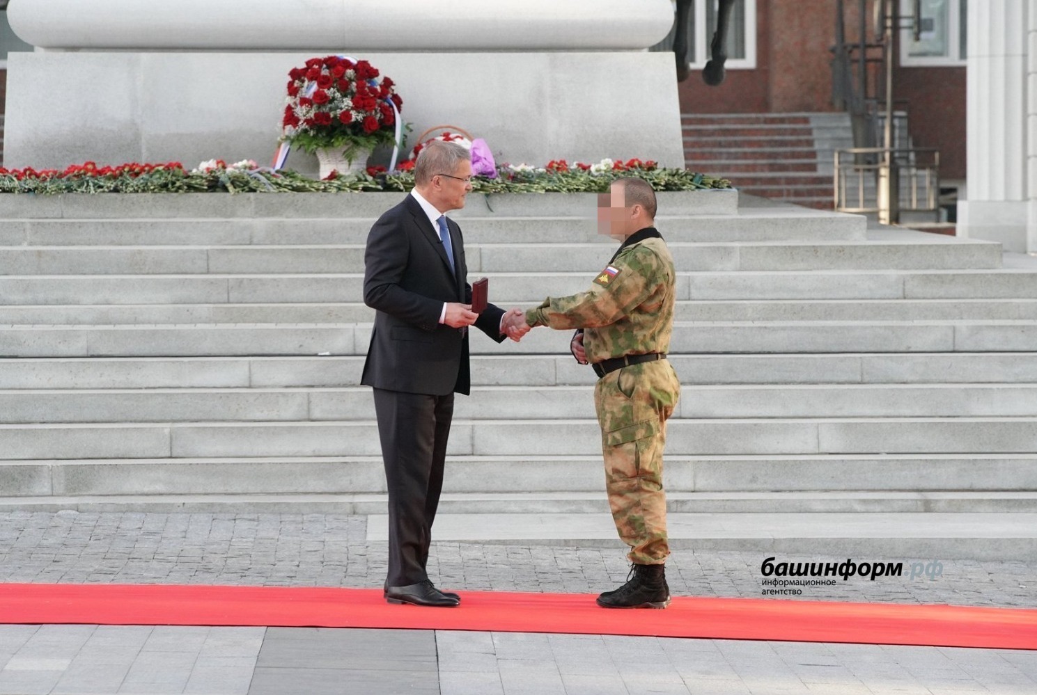 Сегодня в рамках яркой и впечатляющей праздничной программы на Советской площади в Уфе состоялось награждение военнослужащих из Башкирии. Все они — бойцы добровольческих батальонов. Награды им вручил Глава Башкортостана Радий Хабиров.