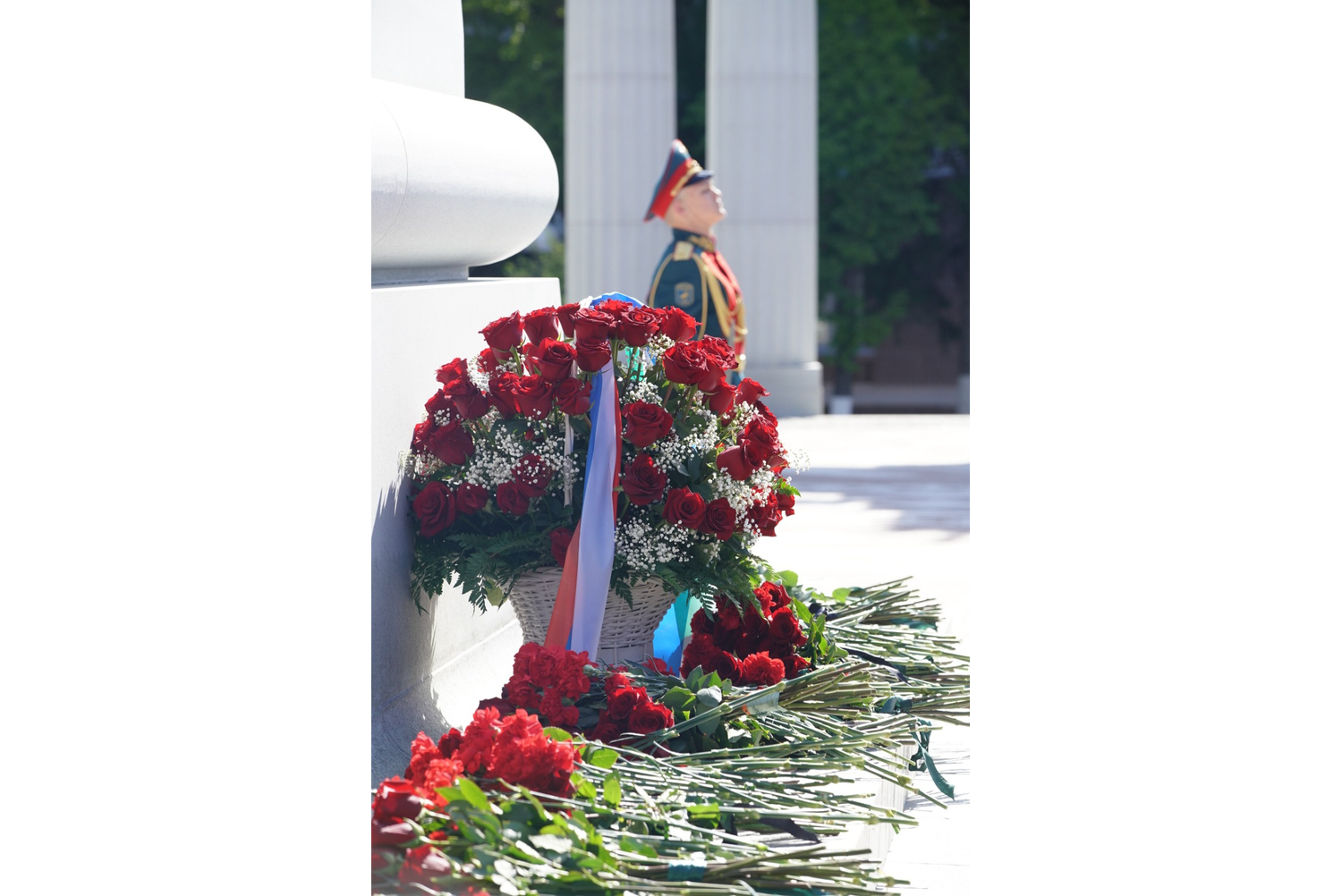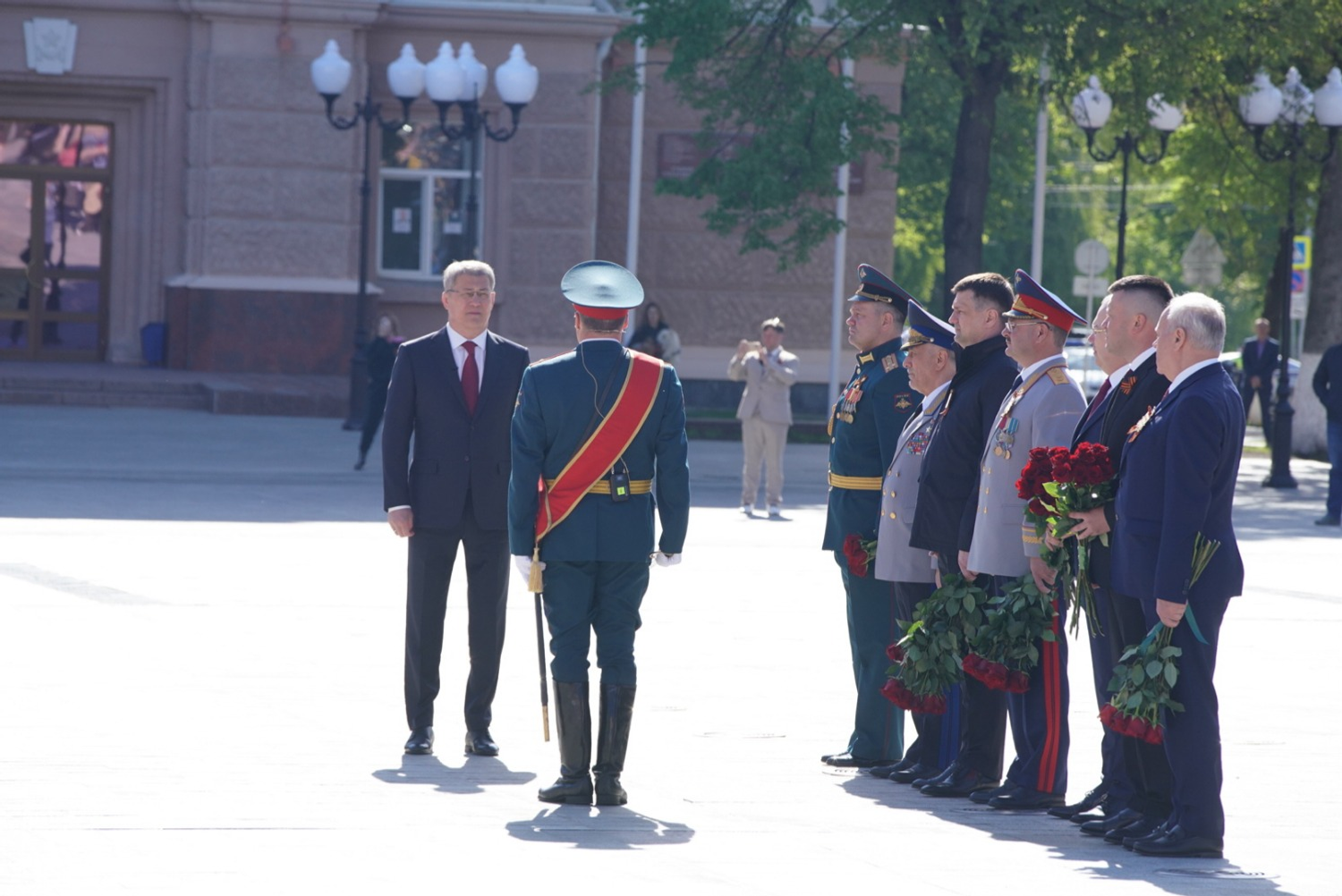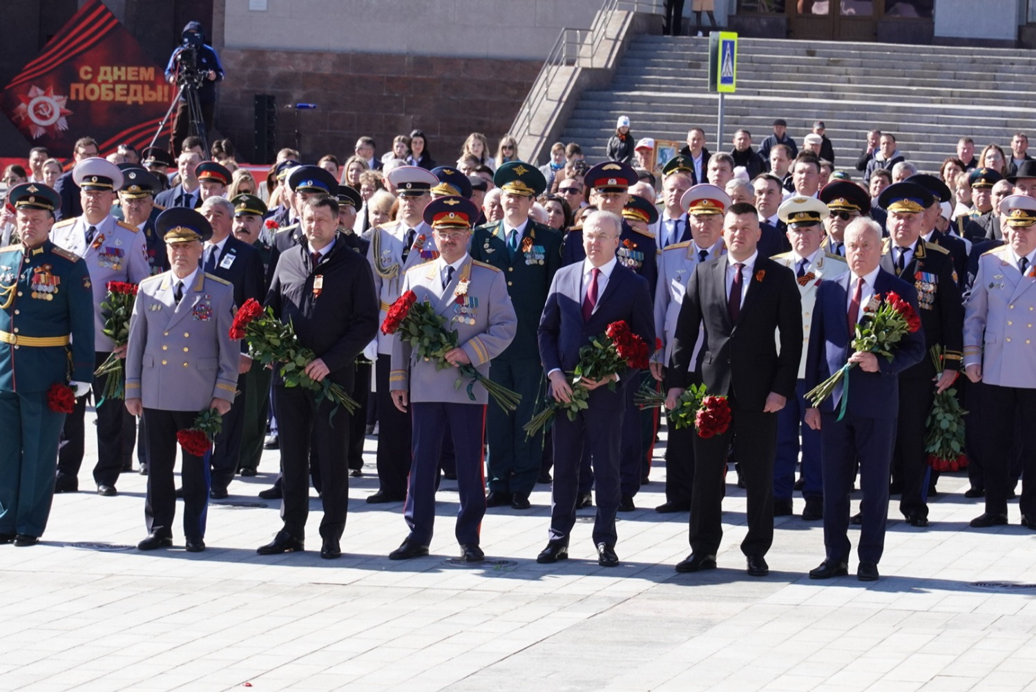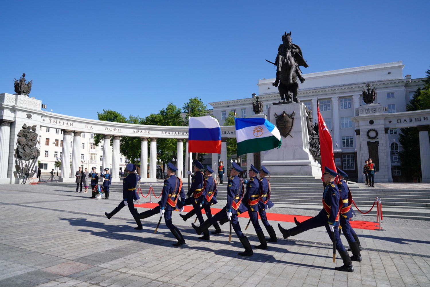 Сегодня, 9 мая, в День Великой Победы, на Советской площади Уфы Глава Башкортостана Радий Хабиров возложил цветы к памятнику Героя России, легендарного комдива Минигали Шаймуратова. В торжественной церемонии приняли участие депутаты Госдумы и Госсобрания, члены правительства, представители ветеранских организаций и боевых братств, участники СВО.