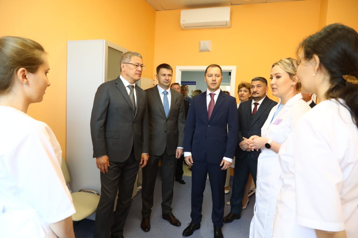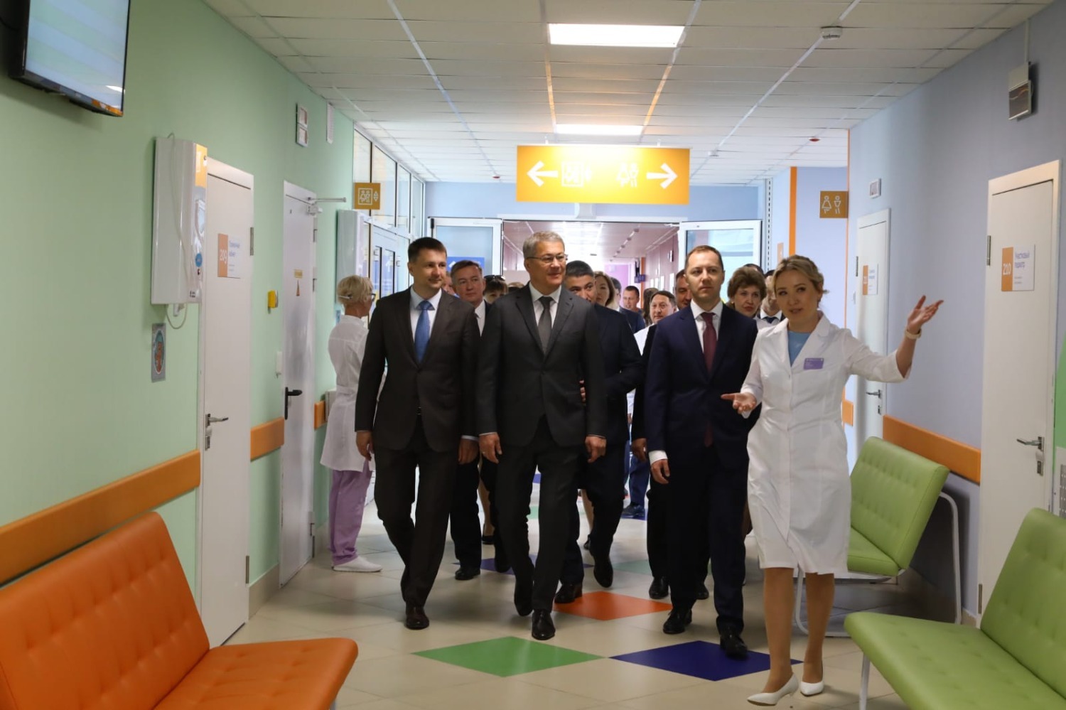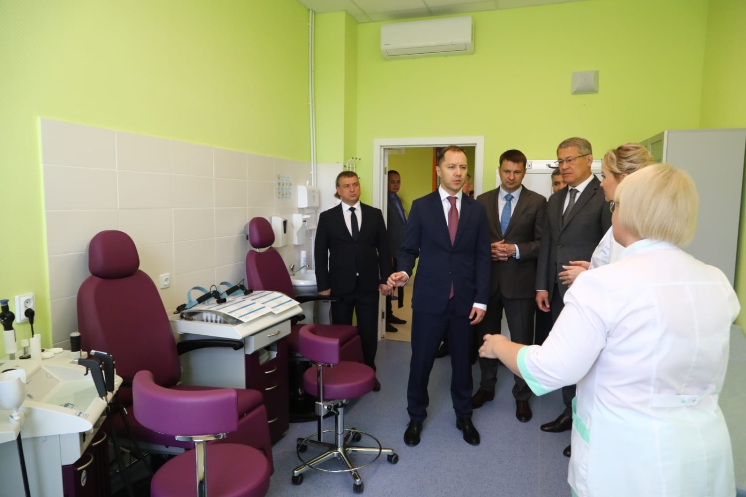 Радий Хабиров ознакомился с работой регистратуры, кабинета участкового терапевта, процедурного и стоматологического кабинета, осмотрел операционную, кабинеты УЗИ, функциональной диагностики, гастроскопии.