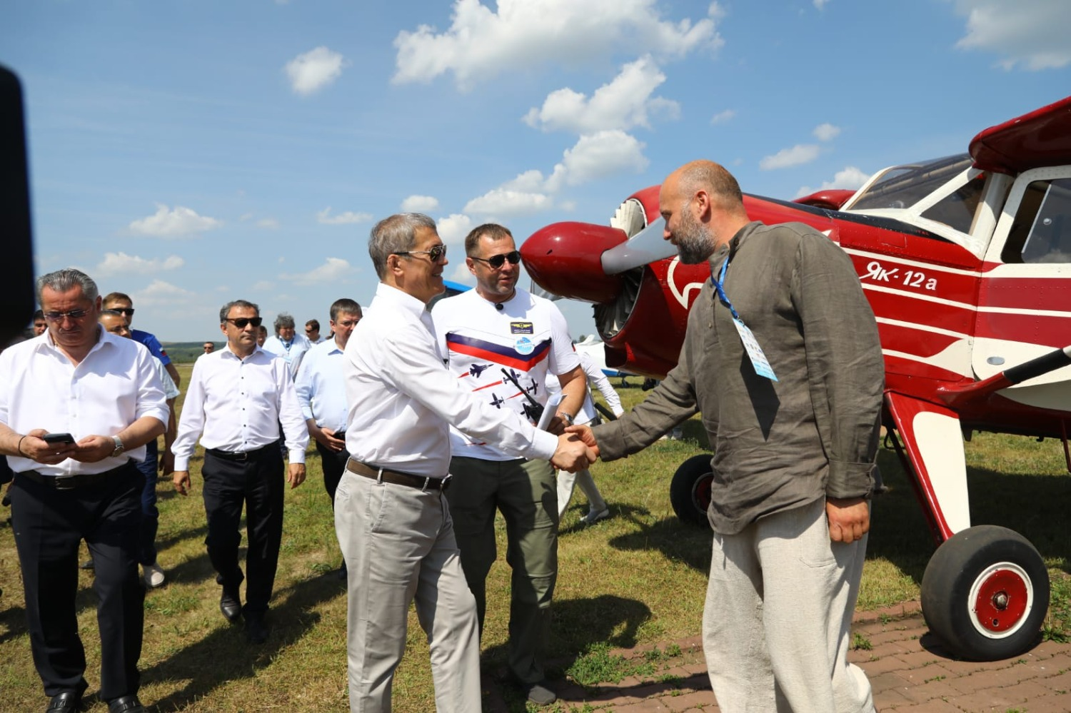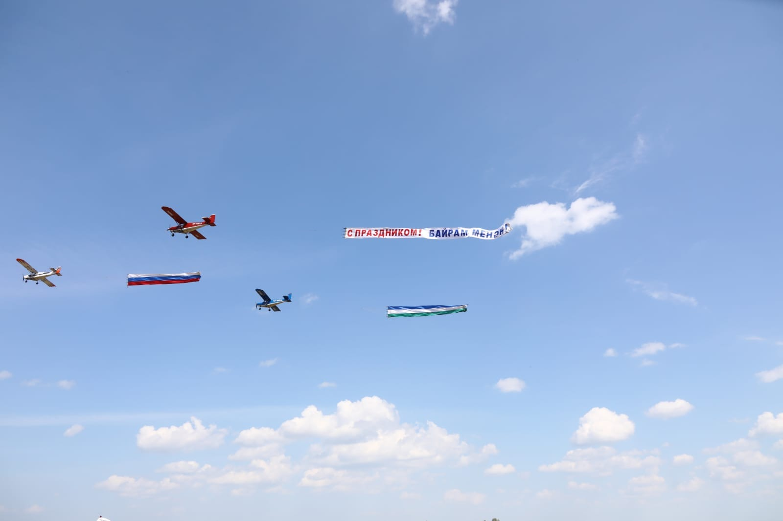 Глава Башкортостана вместе с зрителями понаблюдал за воздушной авиационной программой. В частности, пилоты показали фигуры высшего пилотажа, пролетели с флагами России и Башкортостана, а в завершение с самолета АН-2 восемь парашютистов совершили массовой прыжок. Радий Хабиров осмотрел самолеты ЯК-12, СП-30, СК-12 «Орион», «Борей» и автожир «Танго».
