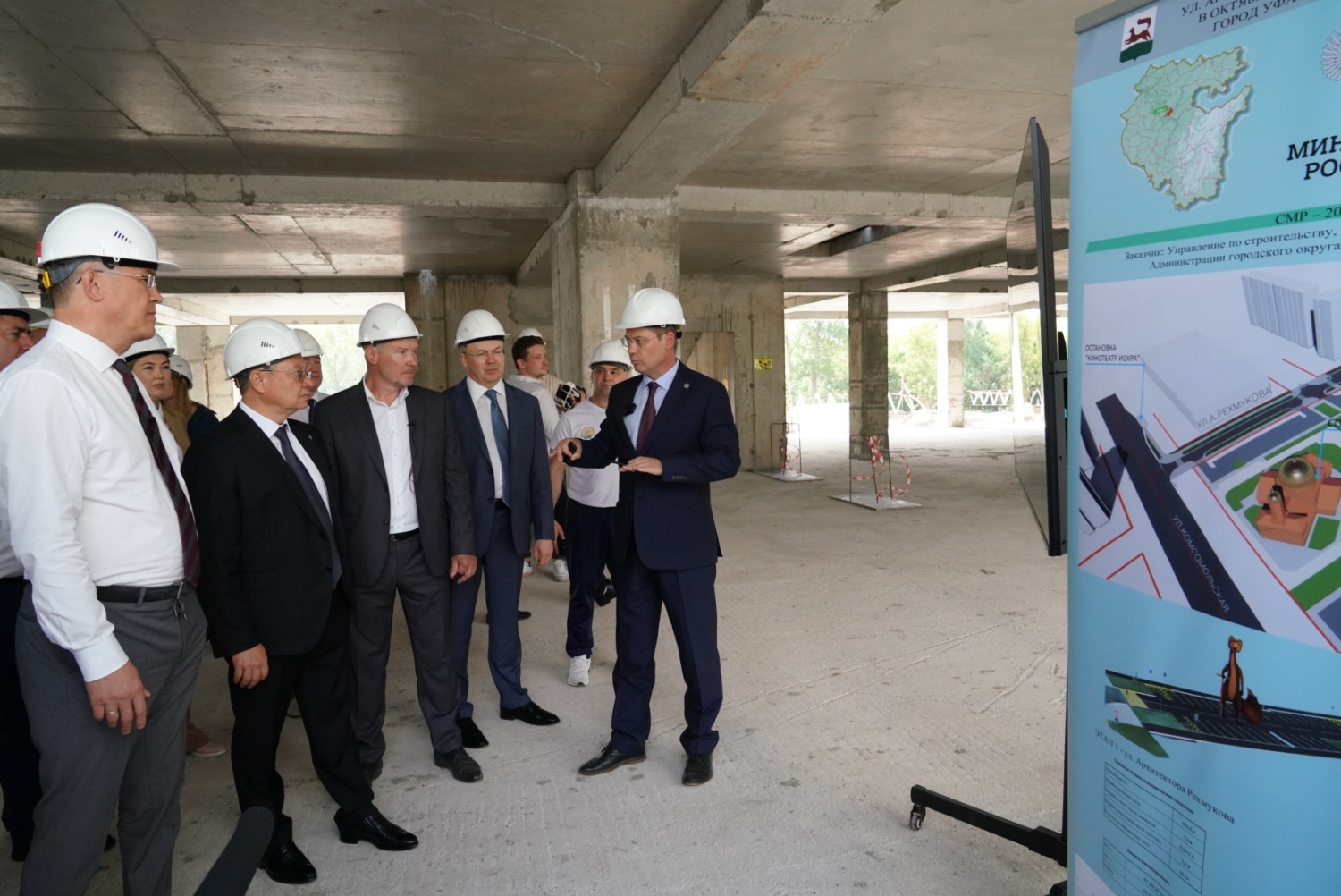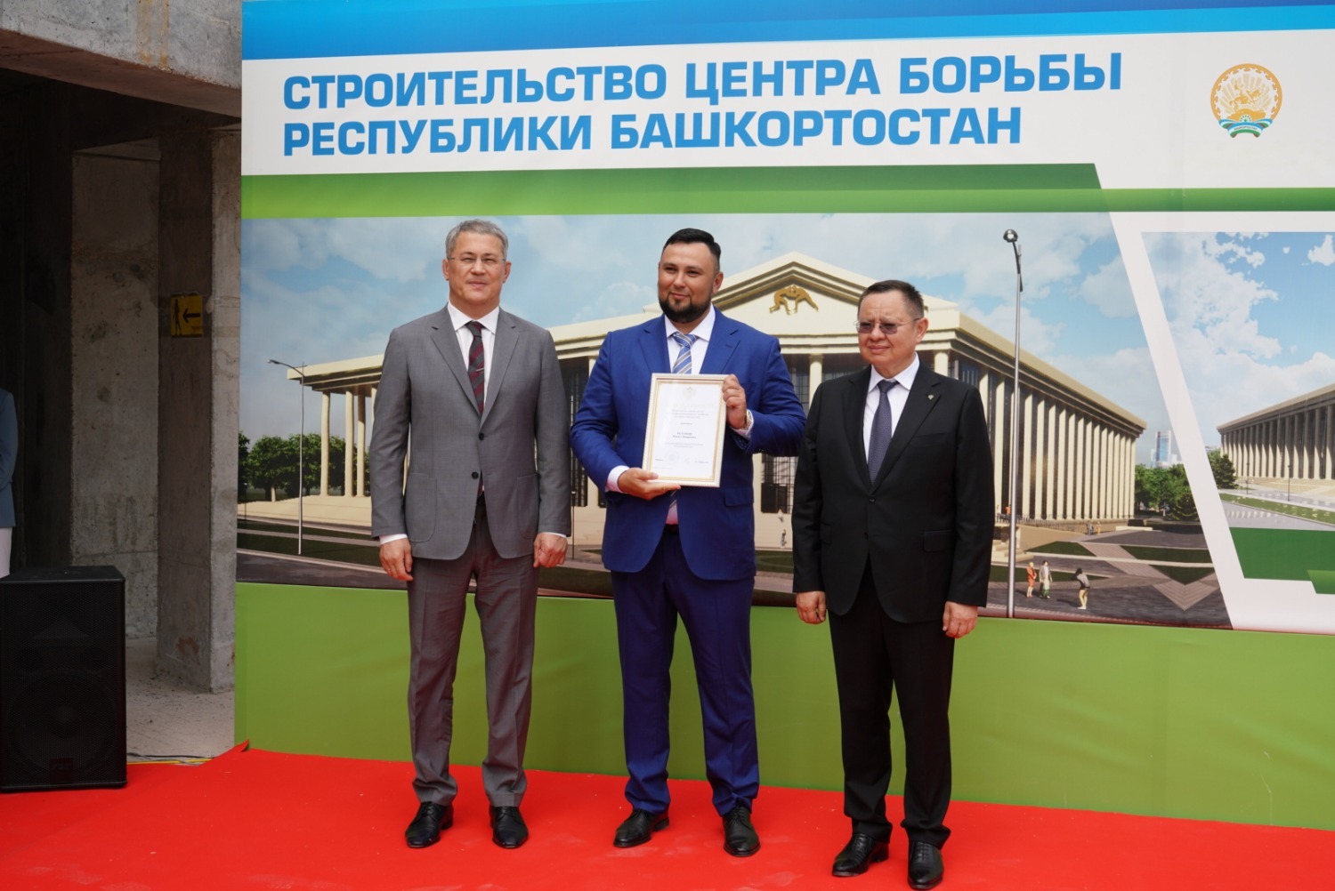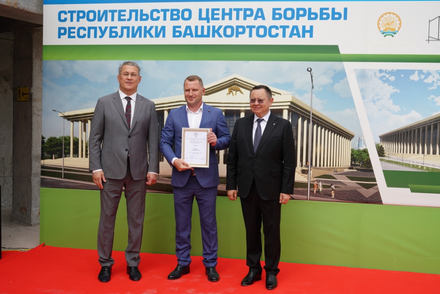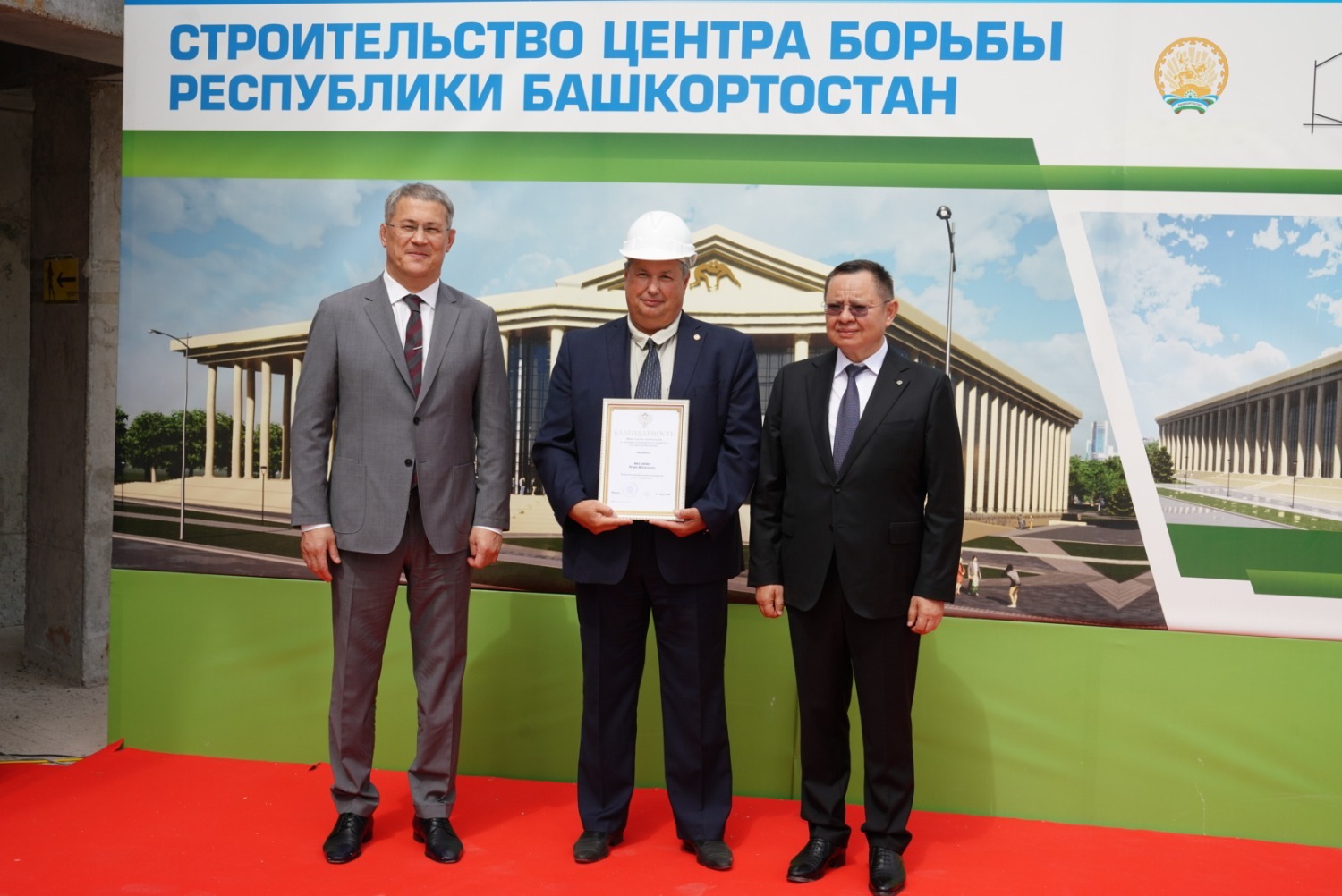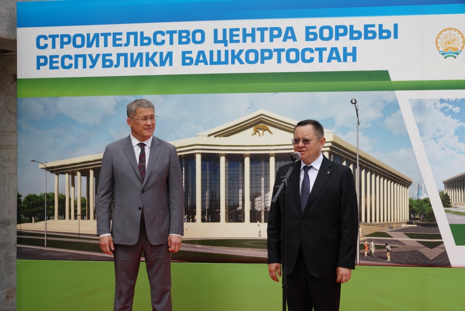 Министр строительства и ЖКХ России Ирек Файзуллин и Глава Башкортостана Радий Хабиров ознакомились с ходом работ на строительной площадке Международного центра спортивной борьбы в Октябрьском районе Уфы.