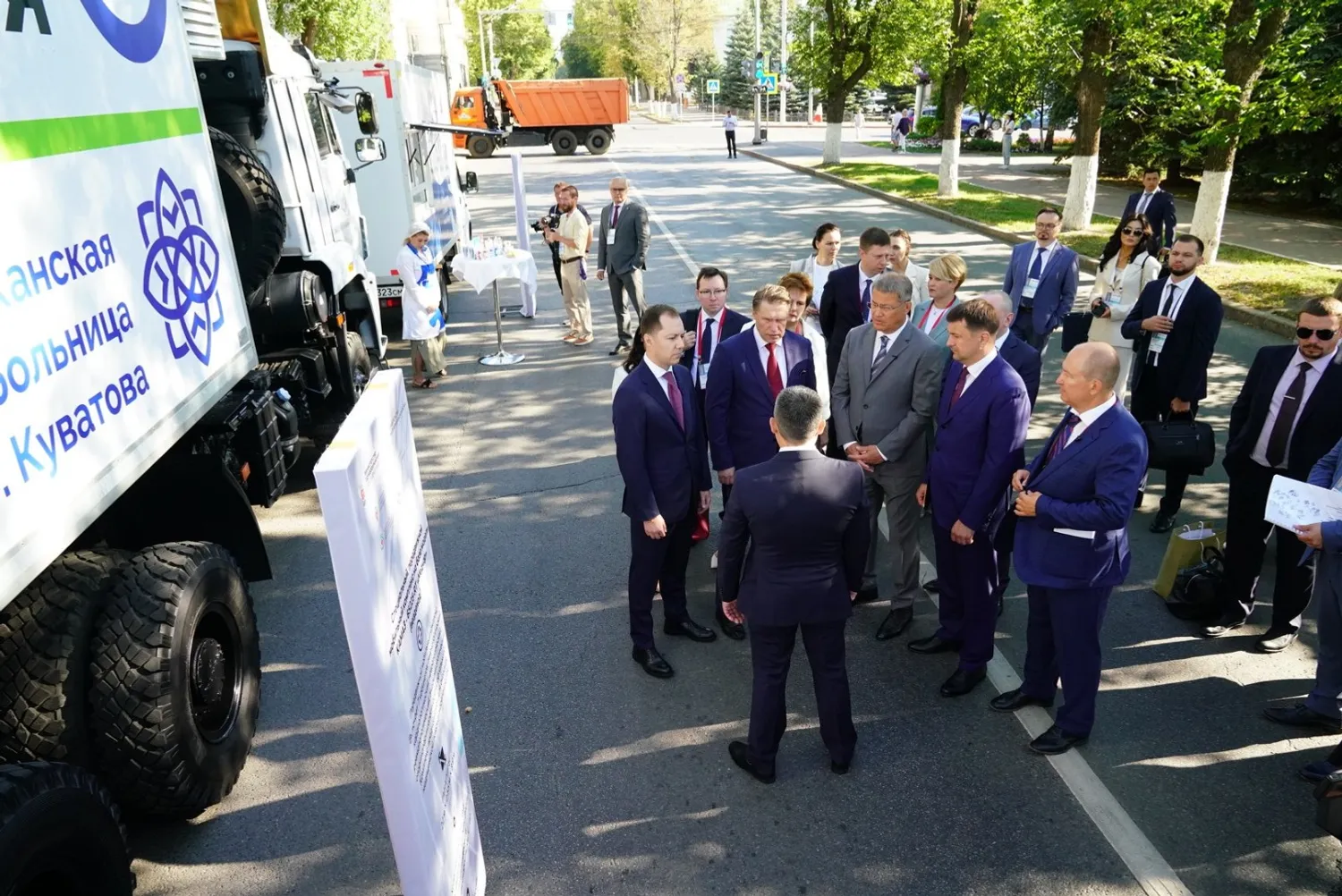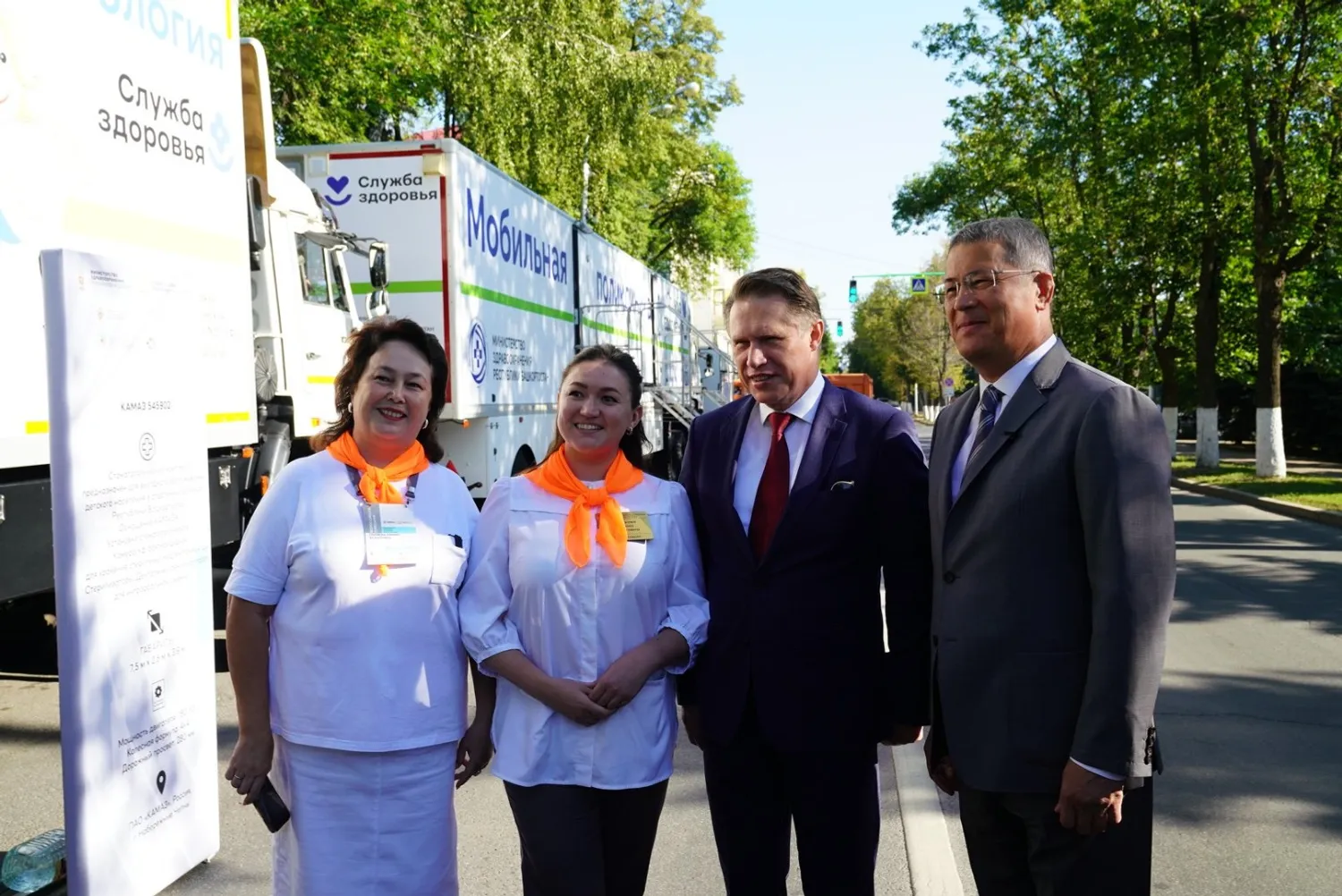 Перед зданием Госсобрания Михаил Мурашко и Радий Хабиров осмотрели медицинские автомобили различного назначения. В их числе – санитарные машины, мобильные диагностические комплексы и лечебные кабинеты стоматолога, кардиолога, гинеколога, офтальмолога, отоларинголога и другие.