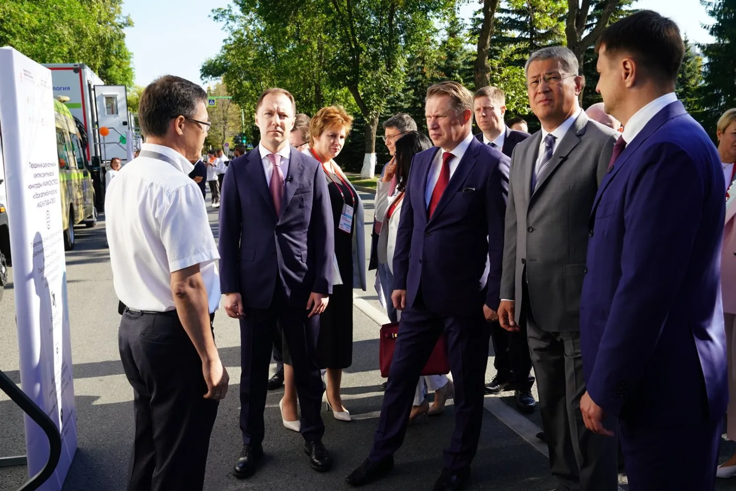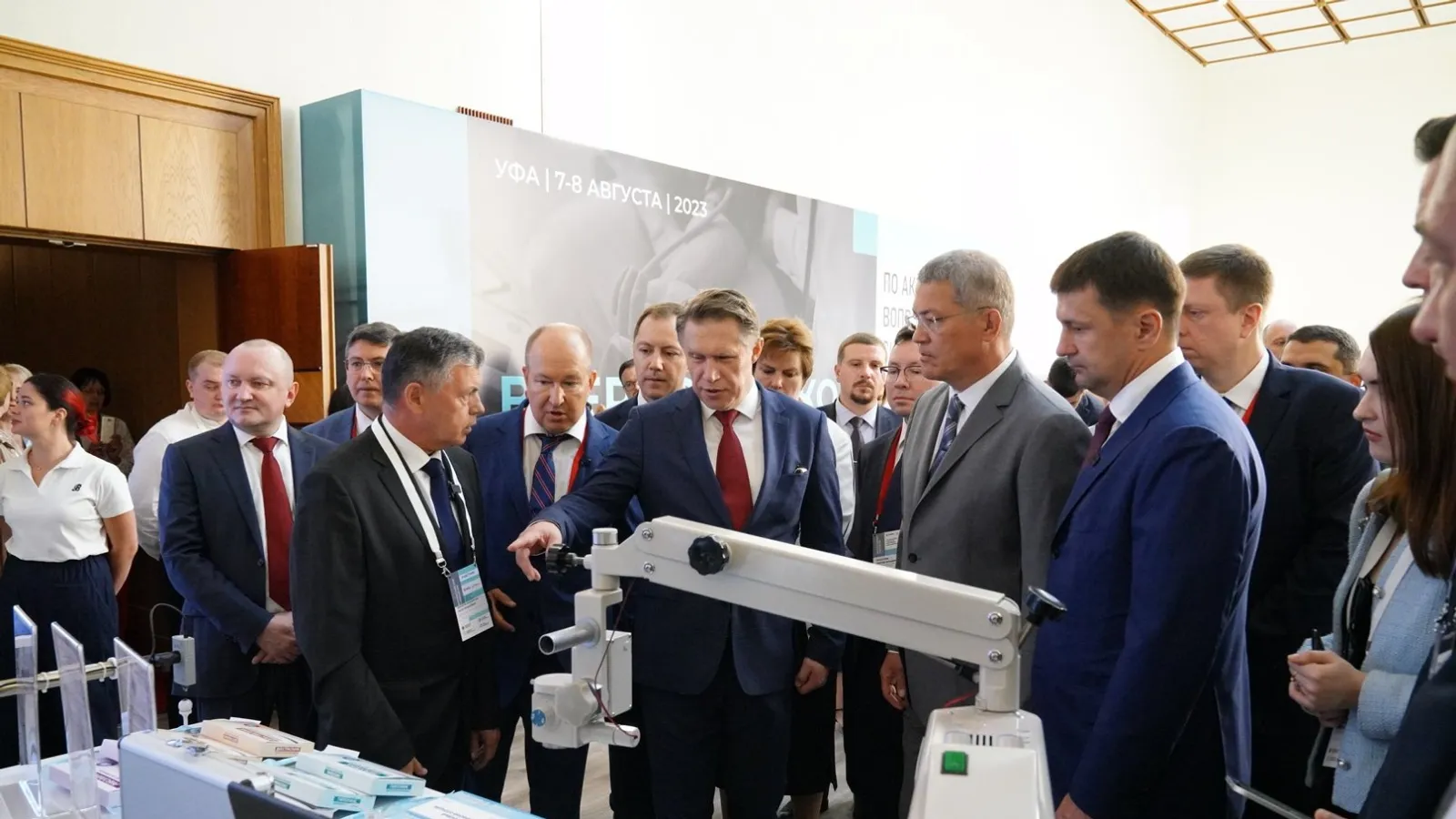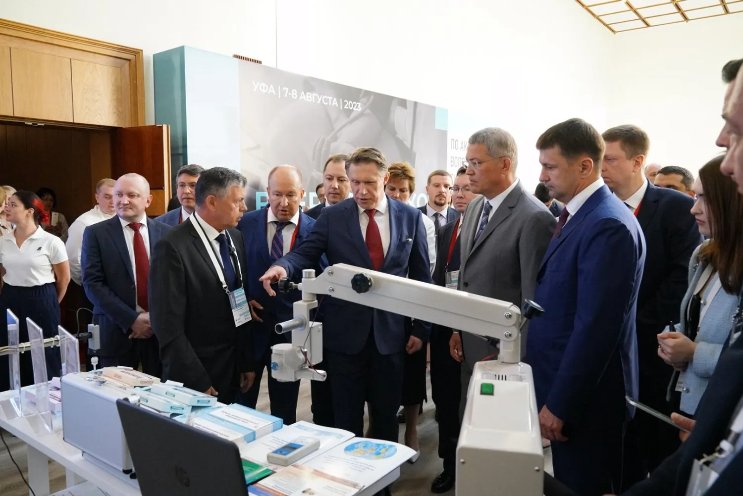 7 августа в Уфе министр здравоохранения России Михаил Мурашко, который прибыл в столицу региона для участия во Всероссийском совещании по вопросам развития медико-санитарной помощи, и Глава Башкортостана Радий Хабиров ознакомились с экспозицией медорганизаций республики и возможностями для оказания первичной помощи жителям.
