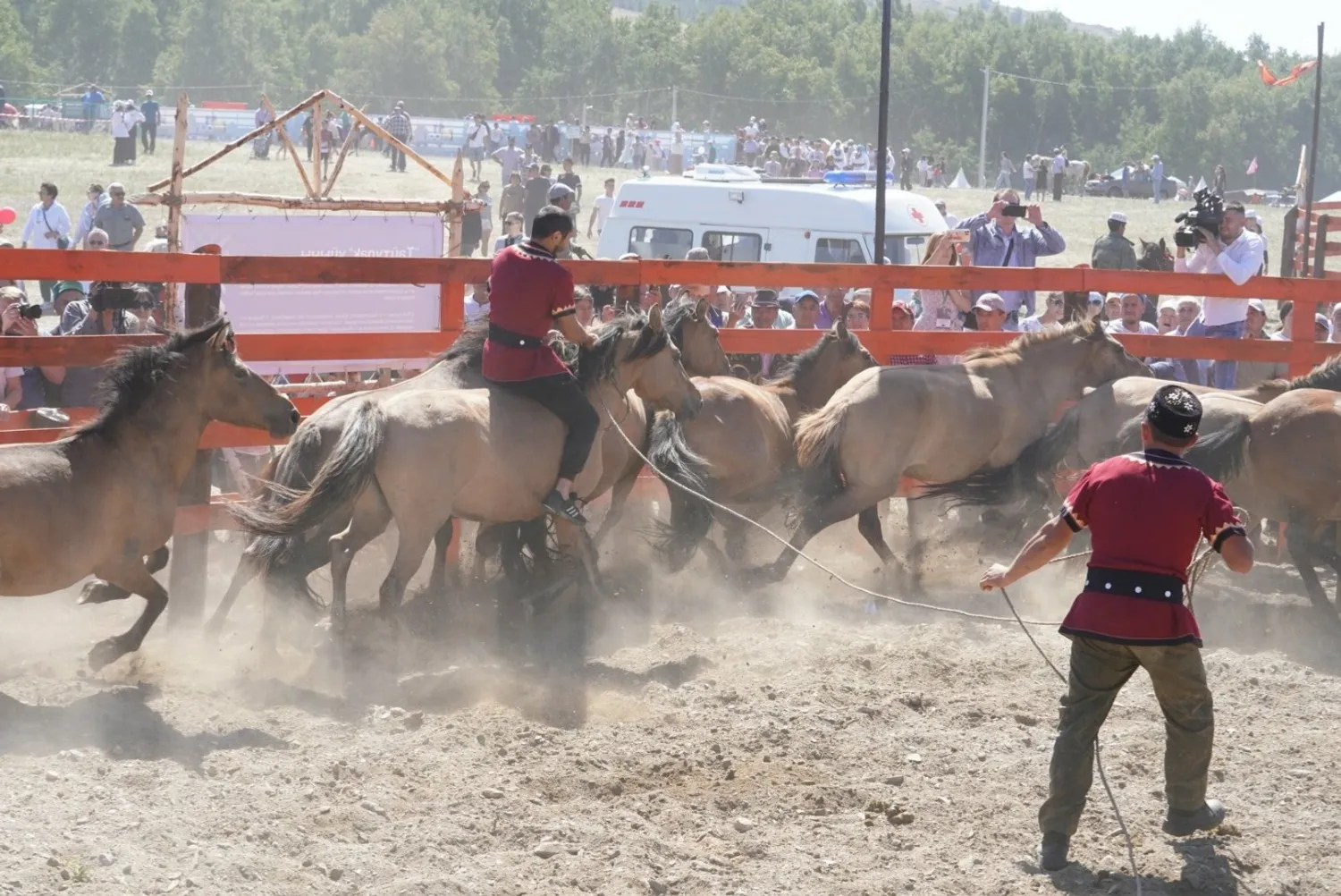 Зрители масштабного мероприятия на берегу озера Графское посмотрели музыкально-хореографическое спортивное представление «Башҡорт аты - милләт ҡото», который состоял из показательного номера «Ирәндек мәргәне», джигитовки, финала конноспортивного состязания «Ауҙарыш» и конного парада.