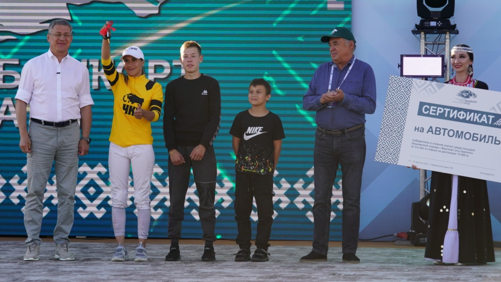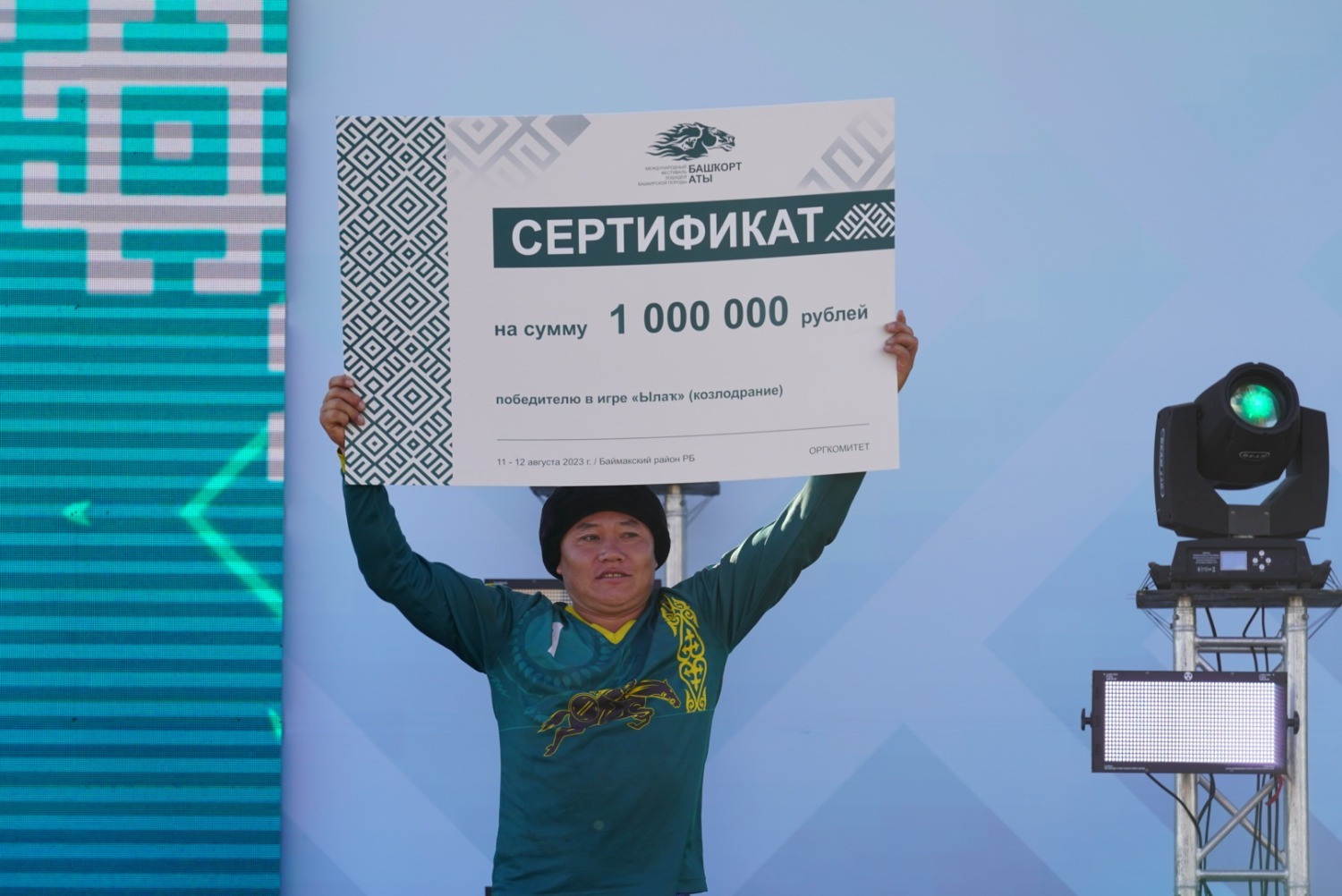 Победители игры «Ылак» - команда из Кустанайской области Казахстана получили из рук Главы Башкортостана сертификат на один миллион рублей.