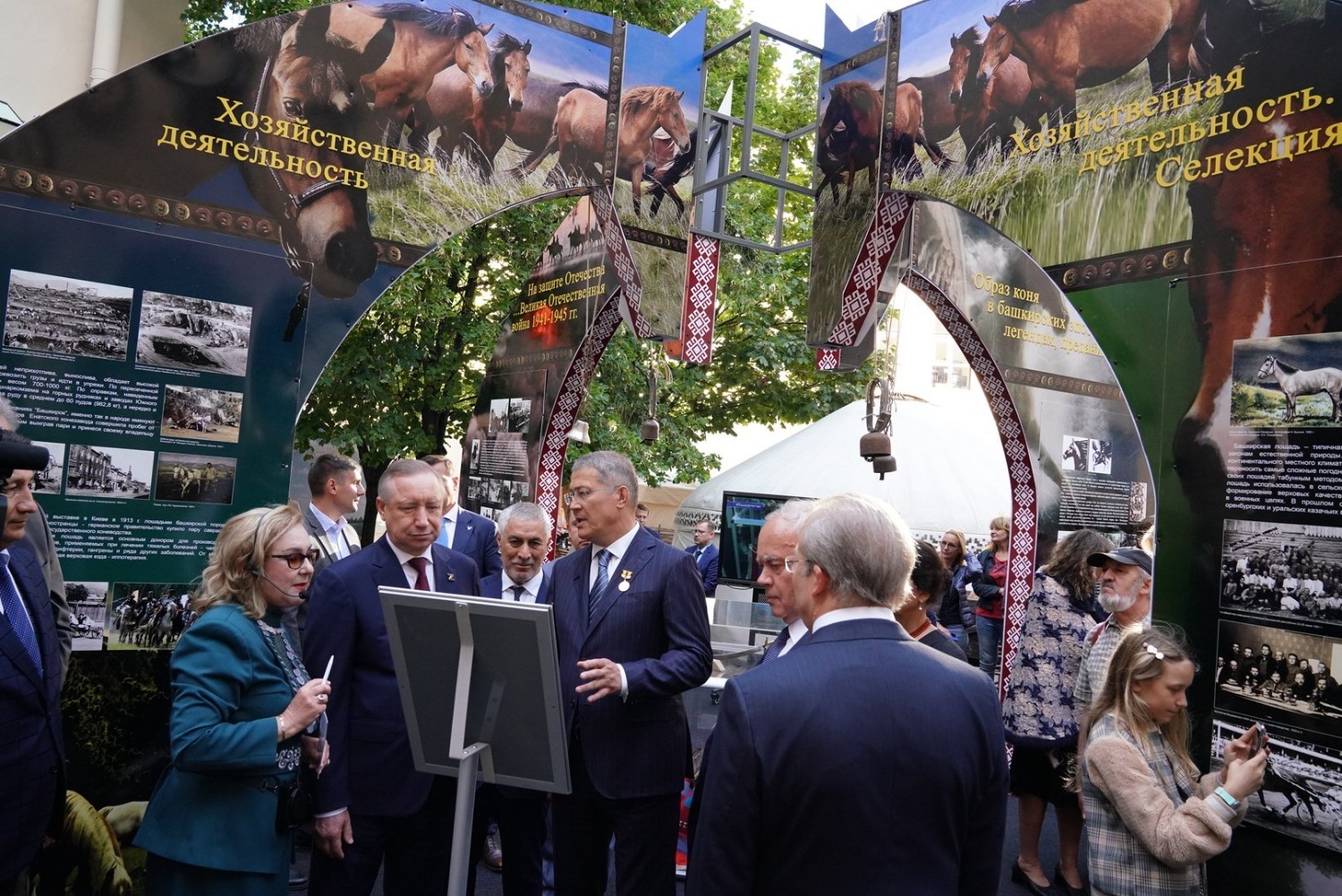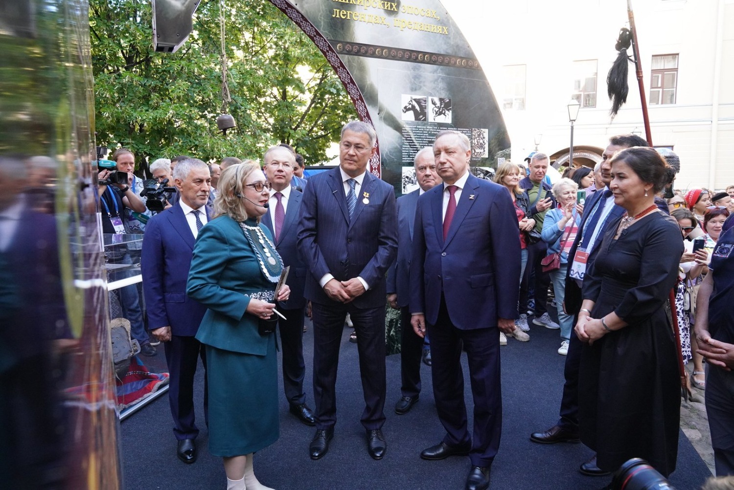Радий Хабиров и Александр Беглов посетили башкирский этнодвор «Земля кочевников – край легенд», где демонстрируется самобытная культура башкир. У жителей и гостей Северной столицы появилась уникальная возможность побывать в настоящей башкирской юрте, познакомиться с изделиями мастеров декоративно-прикладного искусства, принять участие в мастер-классах по войлоковалянию, ткачеству, резьбе по дереву, изготовлению башкирских украшений, чеканке, игре на национальных инструментах, изготовлению курая и кубыза, а также увидеть лучшие работы победителей международного конкурса мастеров башкирского национального костюма «Тамға».