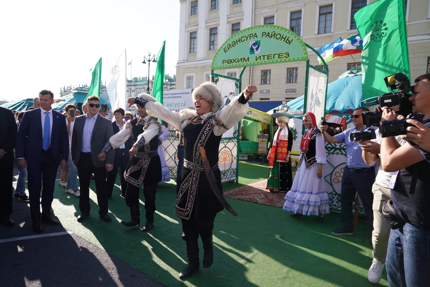 Также на Дворцовой площади работали гастрономический фестиваль «Гусь и мед» и ярмарка товаров Башкортостана, где предлагали мед и продукцию пчеловодства, кумыс, мясные деликатесы, чай, травяные сборы, бальзамы, мучные и кондитерские изделия: чак-чак, баурсак, сувенирные пряники, пихтовая вода и безалкогольные напитки, посуда из керамики.