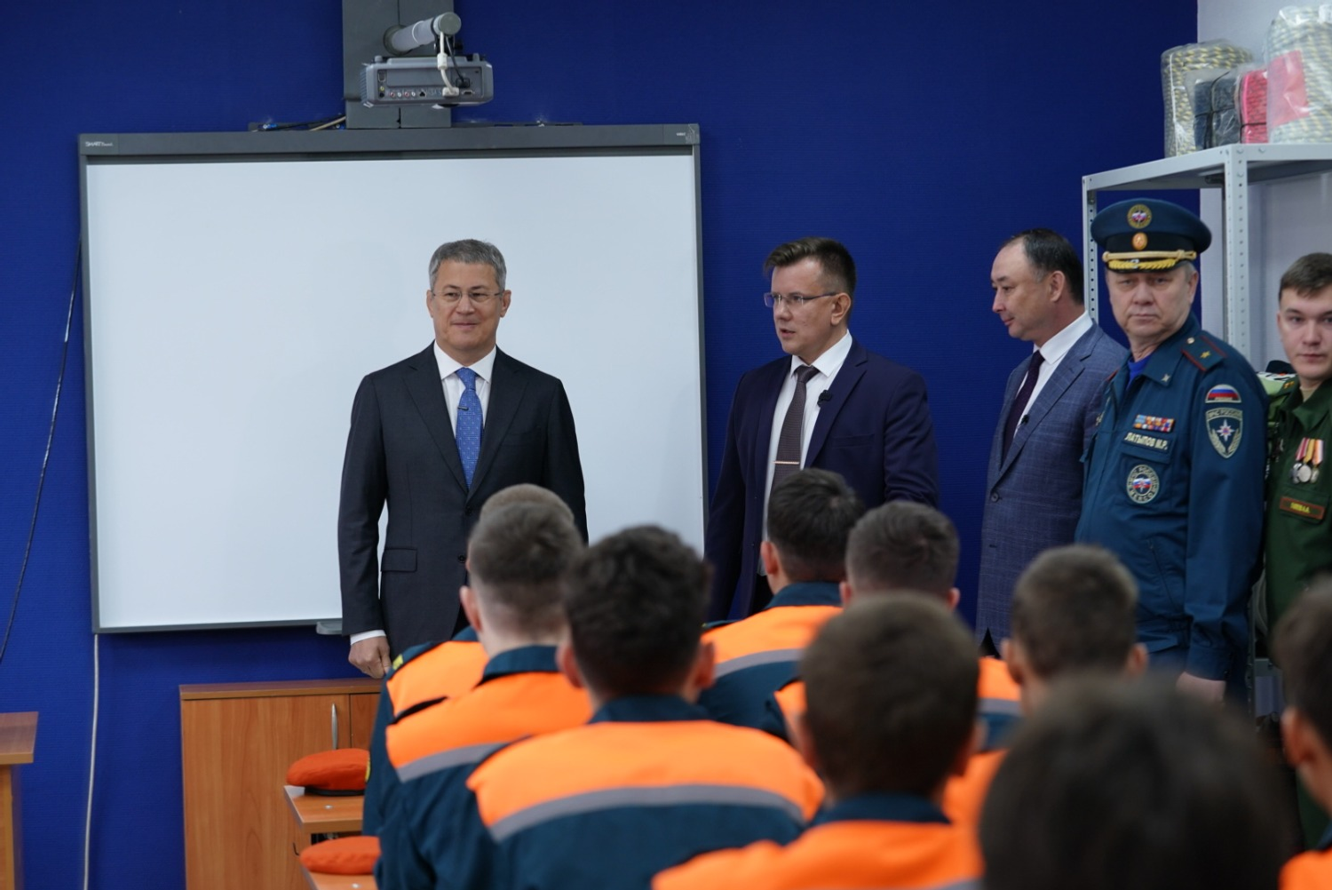 Руководитель республики в одной из аудиторий посмотрел, как идут занятия студентов по оказанию первой медицинской помощи пострадавшим при чрезвычайных ситуациях. Радий Хабиров пообщался со студентами и преподавателями колледжа, пожелал им хорошего учебного года.