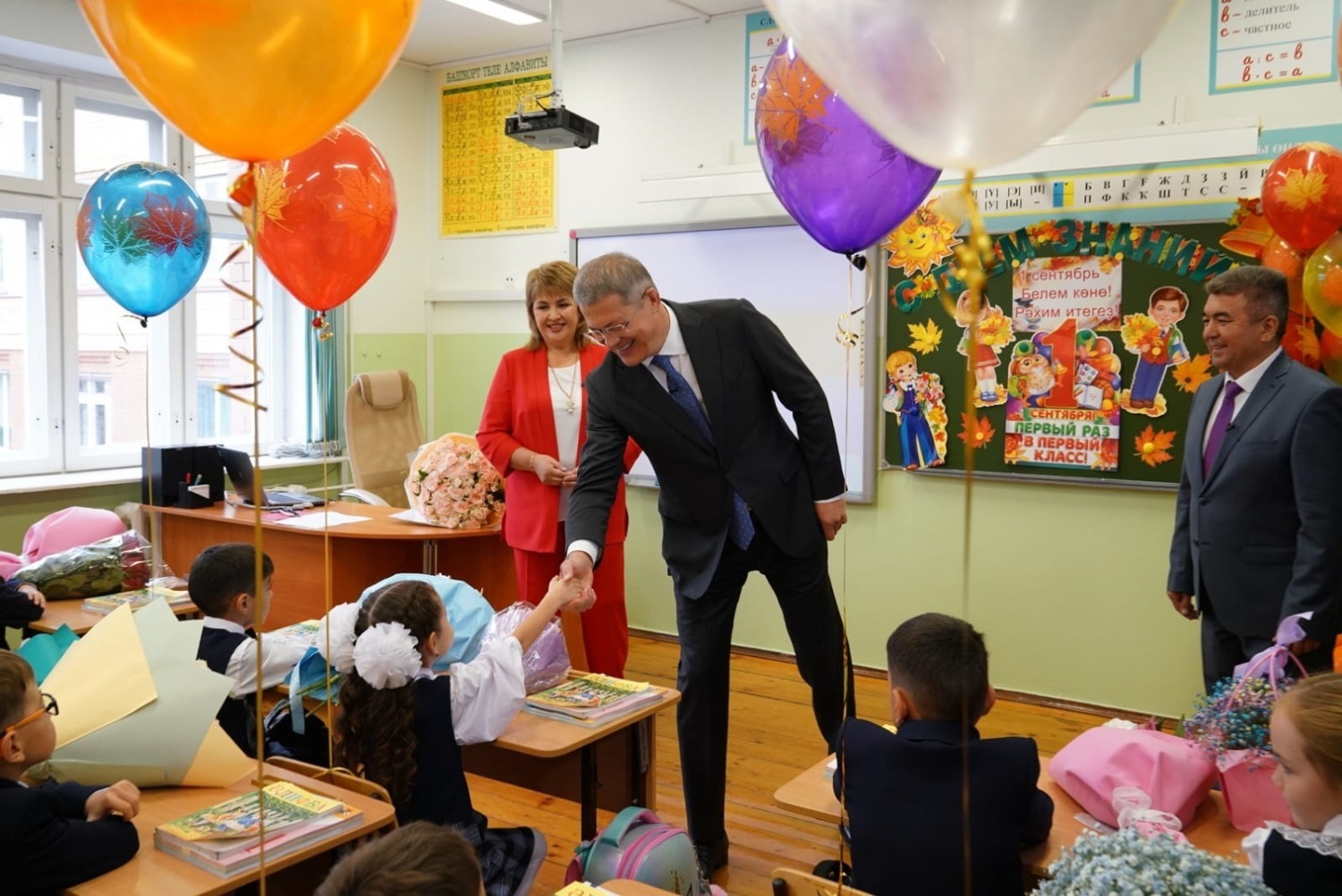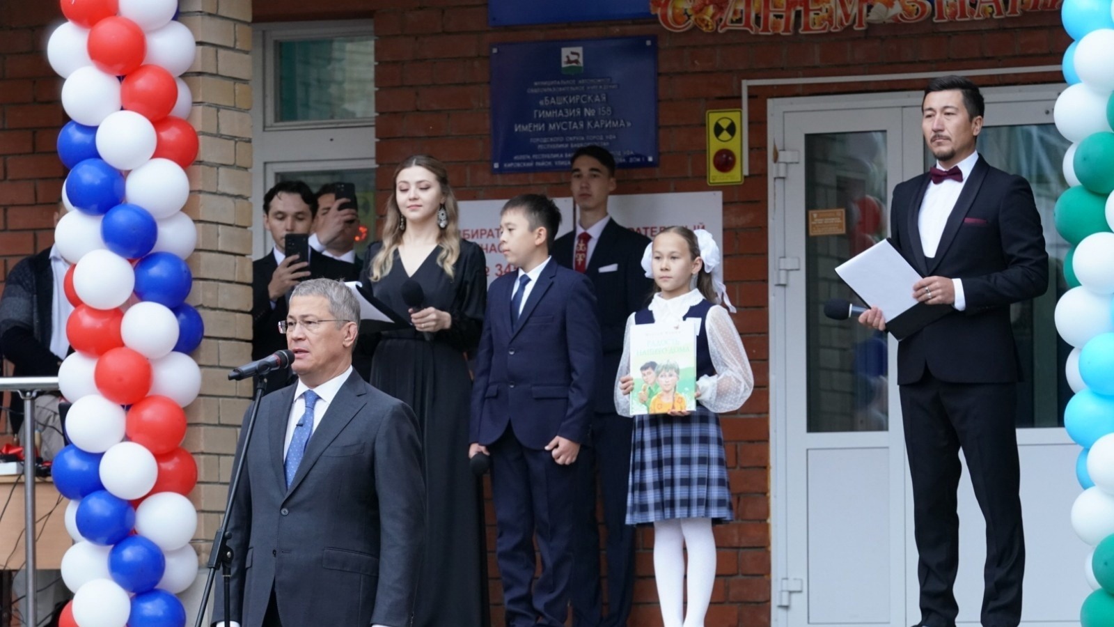 Глава Башкортостана Радий Хабиров приехал в башкирскую гимназию №158 имени Мустая Карима, чтобы проводить в первый класс дочь своего друга и соратника Азата Бадранова, который сейчас находится в зоне проведения специальной военной операции, чтобы поздравить учителей, учеников и родителей с началом нового учебного года.