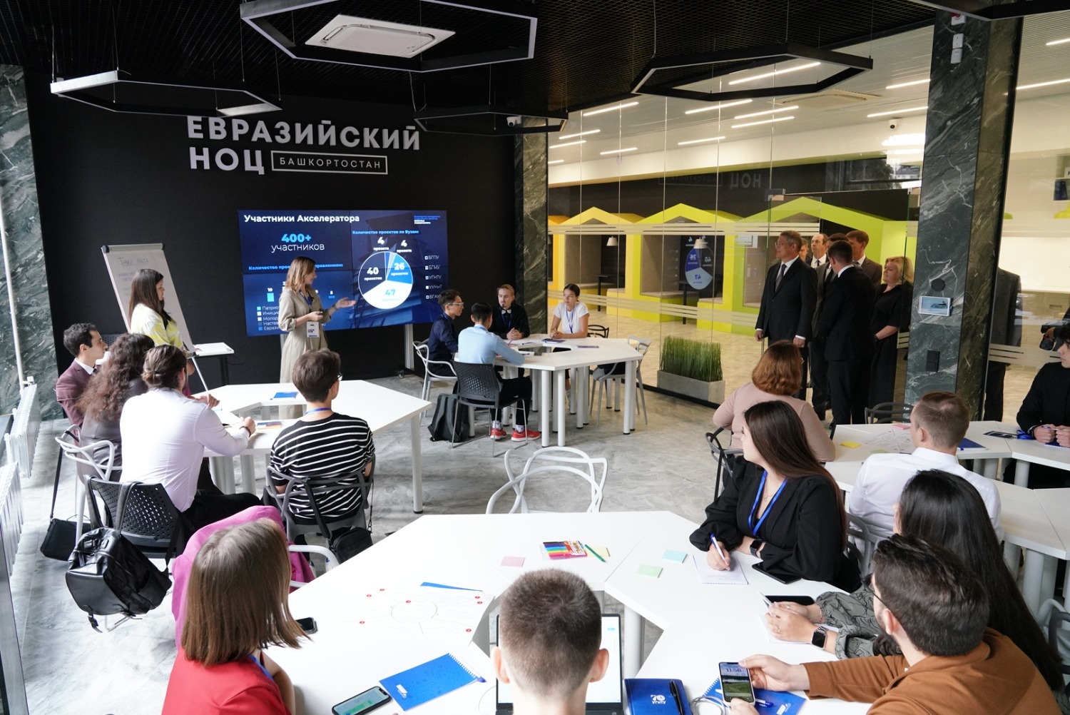 7 сентября в Уфе Глава Башкортостана Радий Хабиров посетил новое деловое и творческое пространство для студентов и учёных – Дом Евразийского научно-образовательного центра (НОЦ) мирового уровня. Его открыли в августе 2023 года на базе Управляющей компании НОЦ.