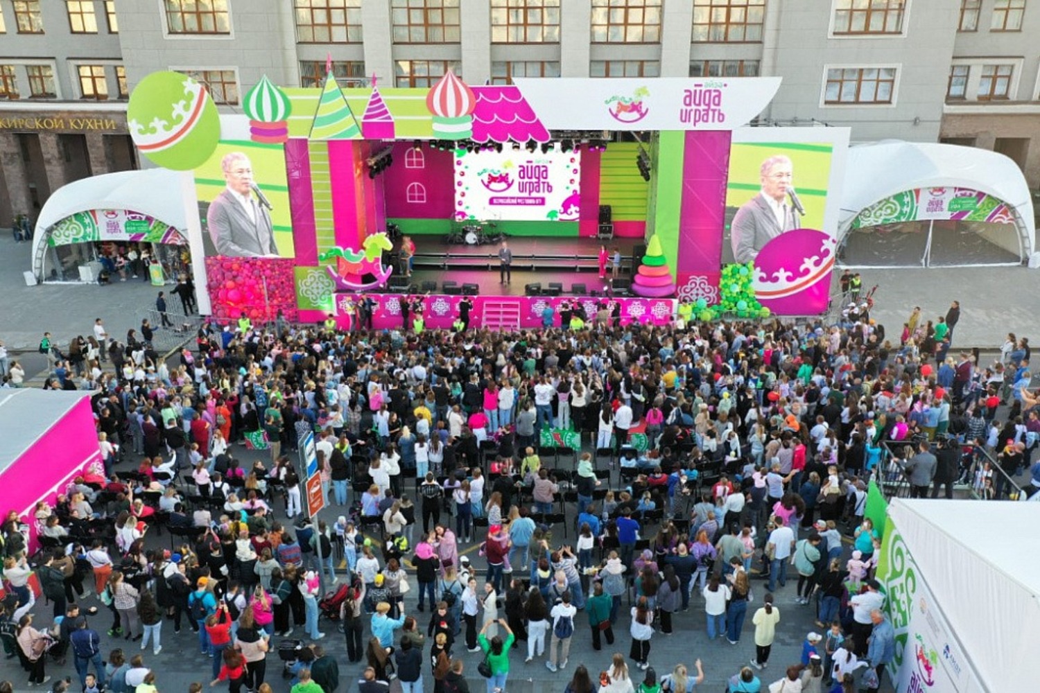 «Главную площадь нашей республики и Уфы на эти четыре дня мы отдали нашим детям — самому главному, что есть в нашей жизни. Мне кажется, история получилась. Самое главное, что мы хотели сделать, это показать нашим детям, сколько есть разных игрушек. Мы хотим сделать так, чтобы у наших детей были самые лучшие игрушки. Игрушки, которые учат их быть хорошими людьми. И если вам этот фестиваль понравился, то я сейчас с большим удовольствием приглашаю всех детей и взрослых уже в следующем году снова на фестиваль „Айда играть“».
