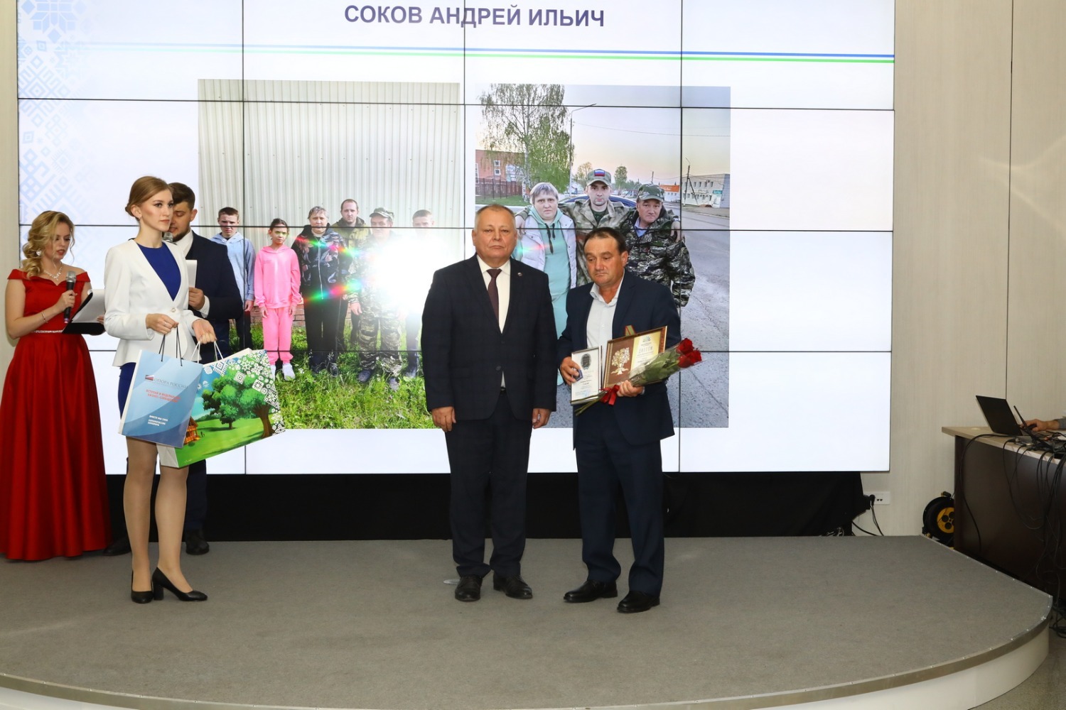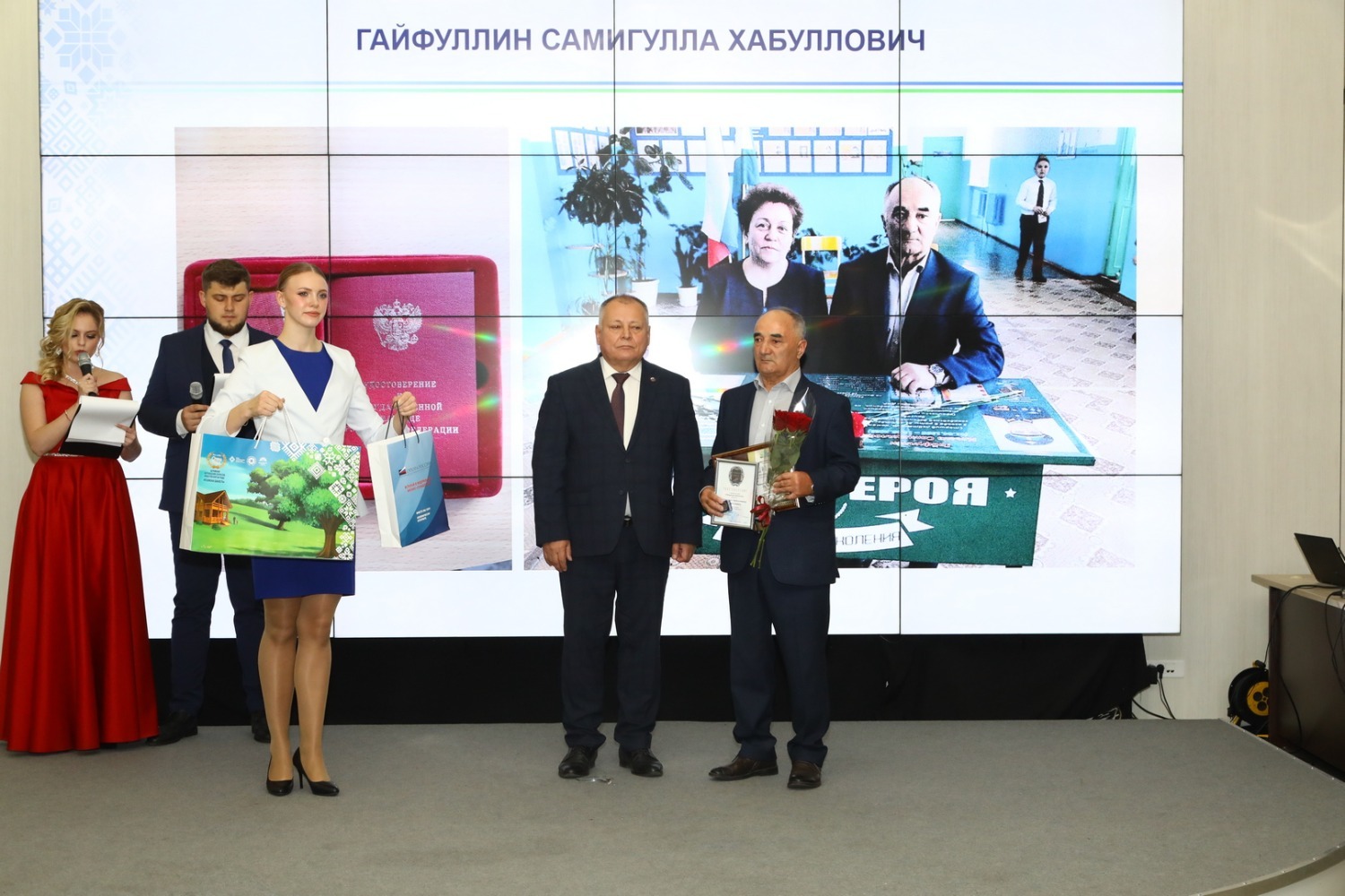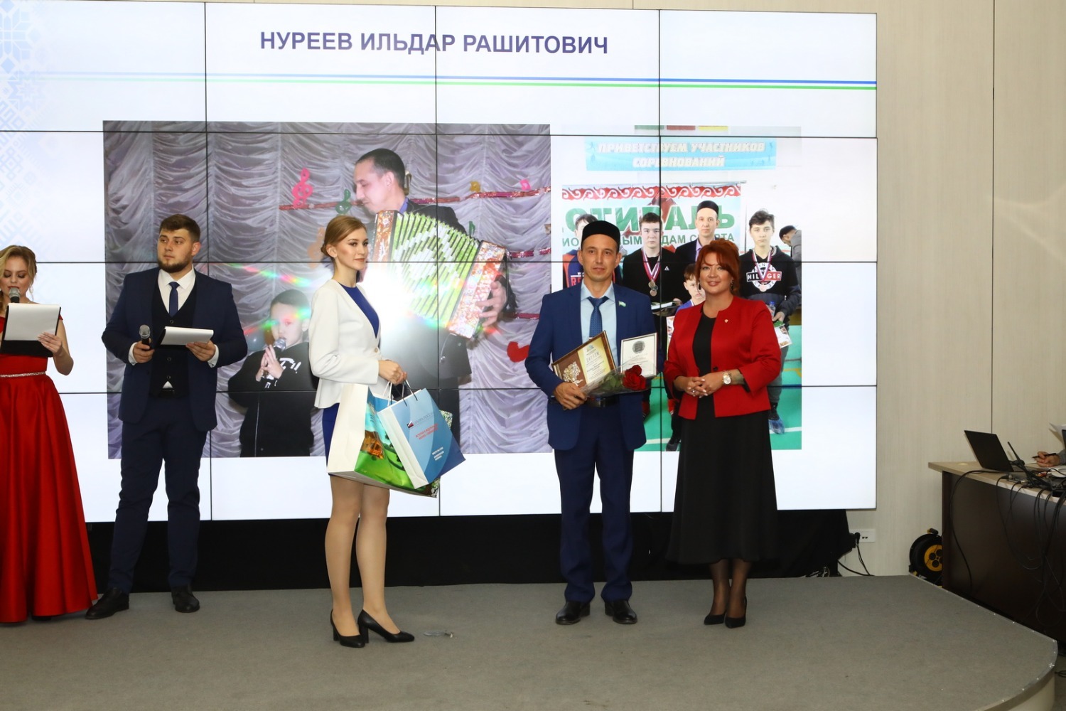 Одними из первых для вручения награды «Отцовская доблесть» на сцену были приглашены лауреаты из числа педагогов. Ведь уже завтра, 5 октября, во многих странах мира будут отмечать День учителя. В их числе учитель физической культуры из города Октябрьского Владислав Коптилин, который также является почетным донором России.