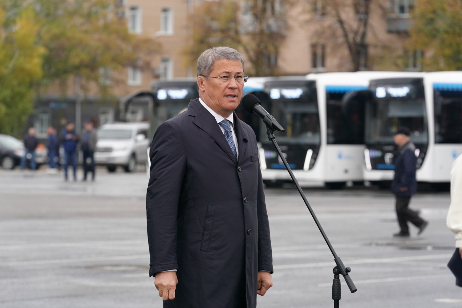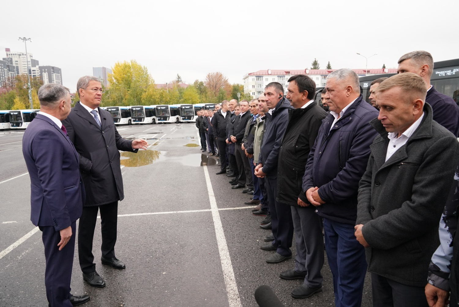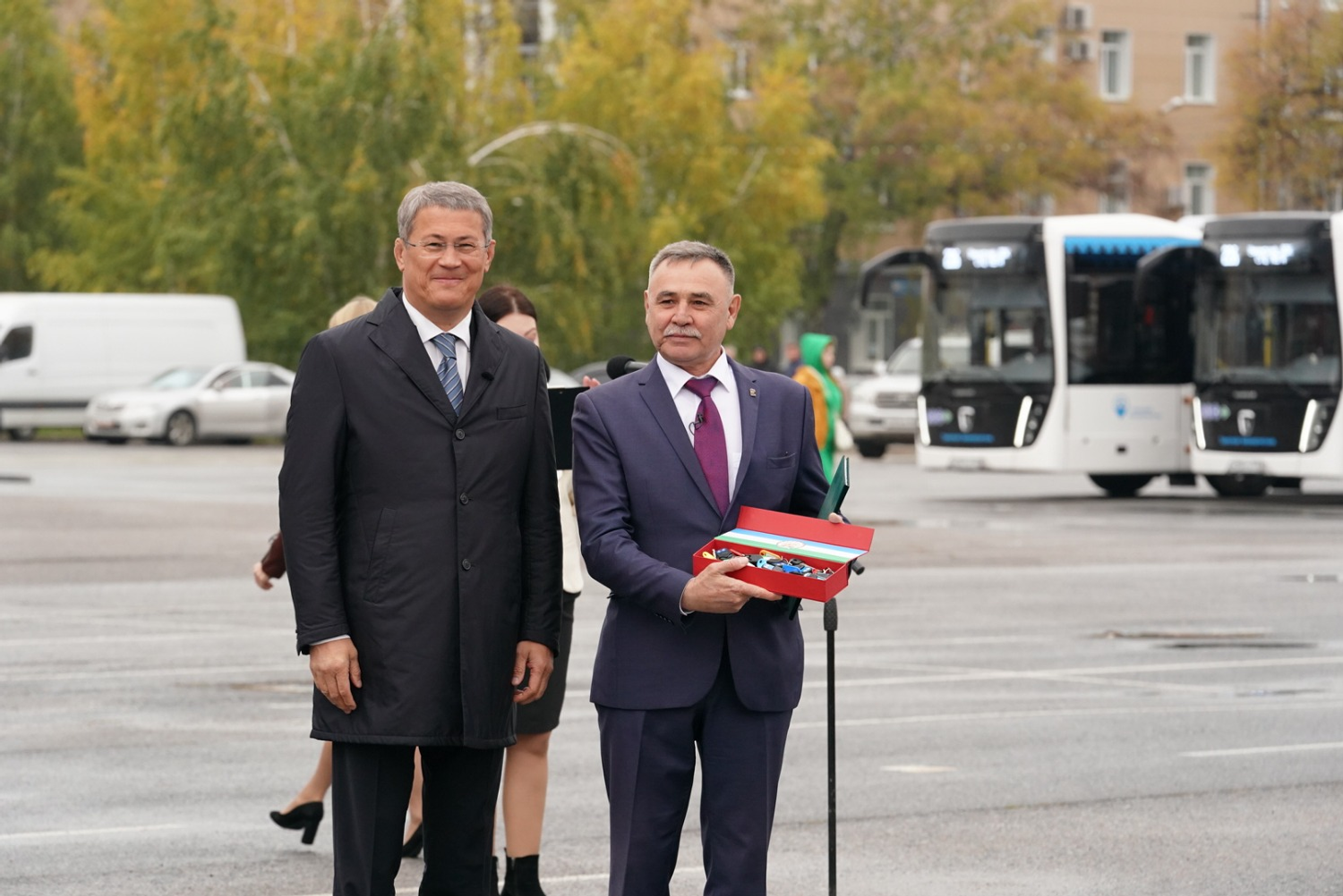 «Сегодня мы, в преддверии Дня Республики, делаем очередной подарок нашим жителям города Уфы. 50 новых автобусов "НефАЗ" уже сегодня выйдут на востребованный 226-й маршрут. Это все будет способствовать повышению качества пассажирских перевозок в Уфе. Конечно, мы сегодня благодарны нашему президенту, национальному проекту «Безопасные качественные дороги». Благодаря всем этим нашим совместным действиям "Башавтотранс" получил более 1200 новых автобусов. При этом мы всегда говорим так: "Мы это себе в копилку положили, но двигаемся дальше". Потому что нам еще есть над чем работать. Мы в ближайшее время ждём поставки 250 автобусов среднего класса, которые пойдут для работы на межмуниципальных маршрутах, для сельских районов – они тоже ждут. Поздравляю вас с наступающим праздником и хочу поблагодарить вас за ваш труд. "Башавтотранс" надежный партнёр нашей республики и надёжный перевозчик. Всем вам безаварийных дорог, удачи во всем, мира, добра и благополучия вашим семьям», - сказал Радий Хабиров.
