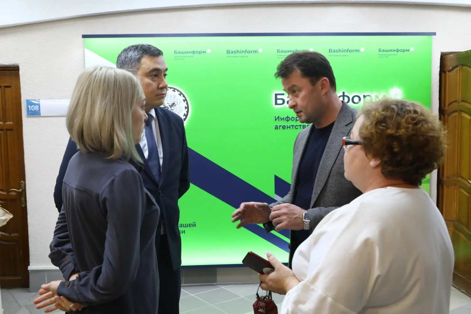 Напомним, «Башинформ» обновил видео- и фотозону для того, чтобы коллегам было удобно и комфортно записывать интервью, фотографировать участников пресс-конференций. Теперь холл информационного агентства украшает баннер с современным дизайном и световым оформлением.