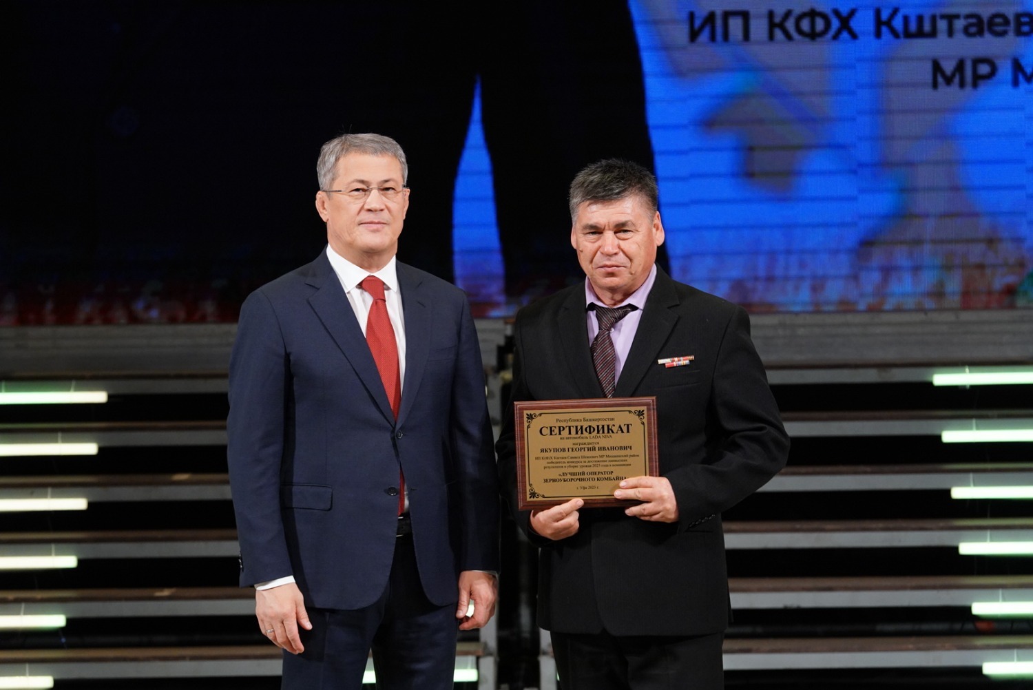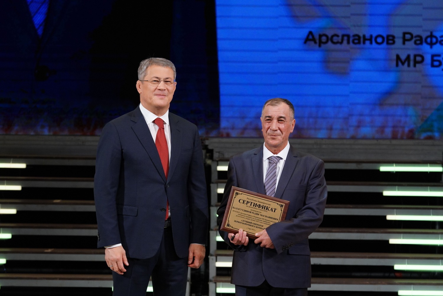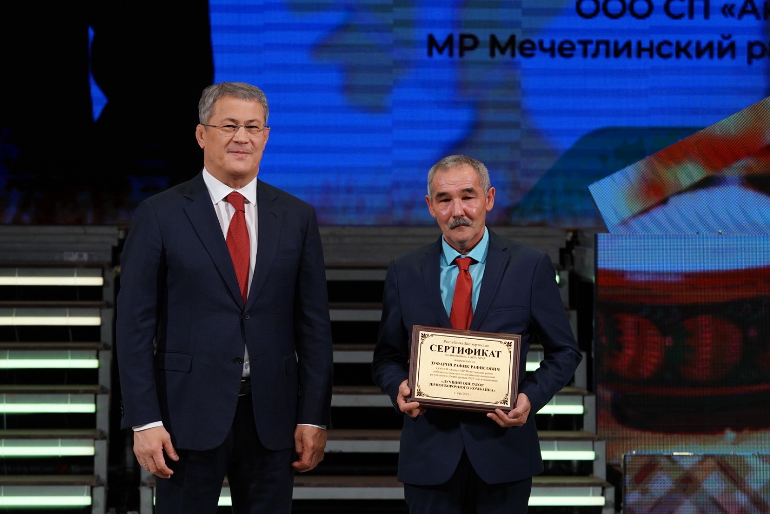 «В сегодняшних сложных условиях вы достойно решаете важнейшую задачу обеспечения продовольственной безопасности страны. Агропромышленный комплекс республики динамично развивается, является одним из флагманов нашей экономики. Башкортостан стабильно входит в десятку крупнейших производителей зерна, гречихи, овощей защищенного грунта, товарного молока и мяса крупного рогатого скота. А также наших традиционных продуктов – мёда и кумыса», - сказал руководитель республики в своем выступлении на торжественном собрании.