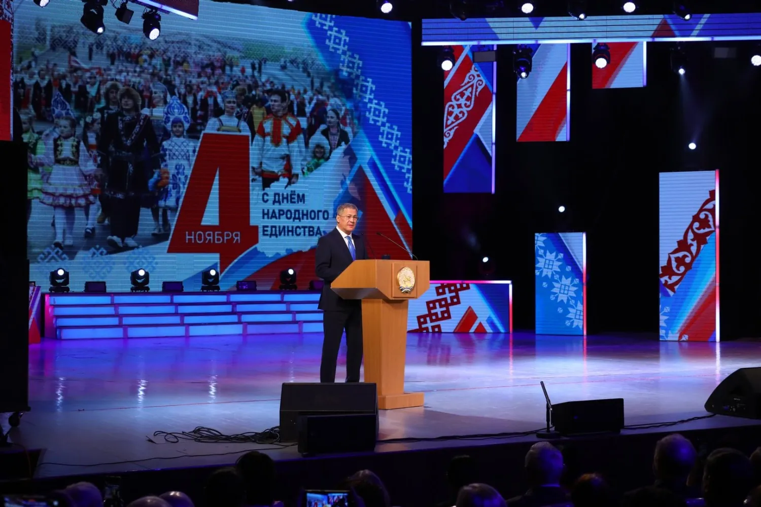 В Уфе состоялся торжественный концерт в честь Дня народного единства. В ГКЗ «Башкортостан» прибыли почётные гости, общественные деятели, лучшие представители разных отраслей. Атмосферой праздника было наполнено фойе концертного зала, где играл живой оркестр и развернулись выставки детских рисунков.