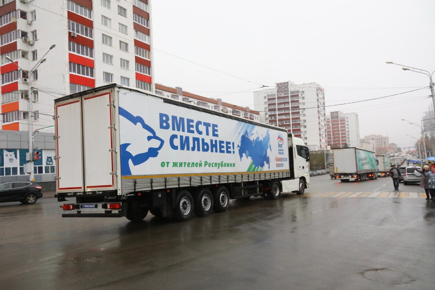 «Мы отправляем от всей республики сотый гуманитарный конвой. Он собран всеми нашими жителями. И взрослыми, и молодыми, и бабушками, и мужчинами, и богатые и бедные – все вложили сюда толику своей души, своей энергии. Мы сегодня благодарим жителей Башкортостана, которые формируют эти конвои. Их очень ждут, и этот конвой тоже ждут наши ребята. Потому что всё, что мы туда везём, помогает им остаться живыми и здоровыми, помогает выполнить свои боевые задачи. Поэтому я сегодня вновь благодарю наших ребят, водителей, которые выполняют очень непростую, тяжёлую работу, уже не первый раз отправляются в этот сложный рейс. Благодарю всех сотрудников республиканского госкомитета по чрезвычайным ситуациям за сопровождение конвоя, за чёткую организацию этой работы. Все гордятся тем, как работает Башкортостан, как работают башкирские конвои. В добрый путь! Ждём вас обратно. Спасибо большое, от души», - сказал Глава Башкортостана Радий Хабиров.