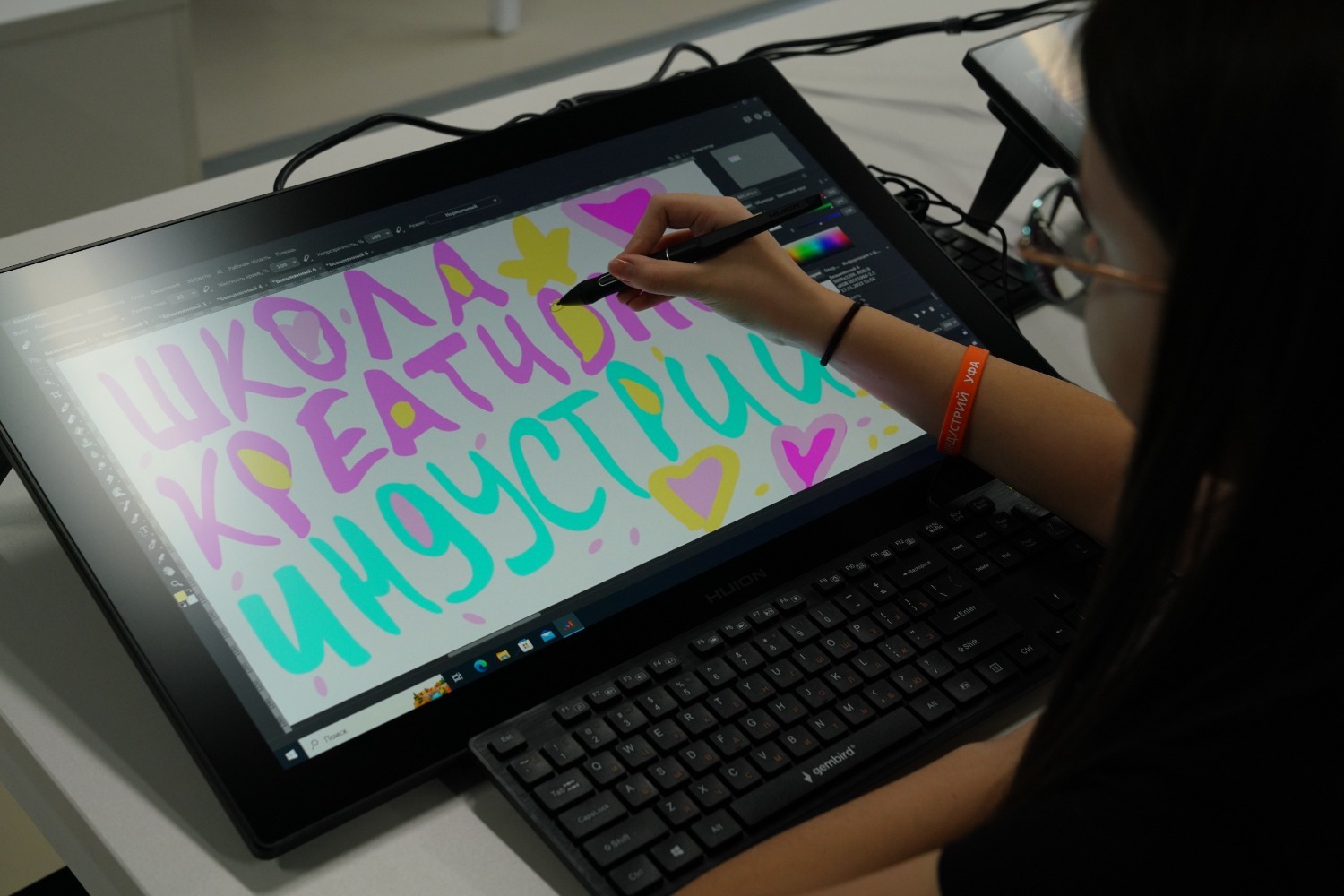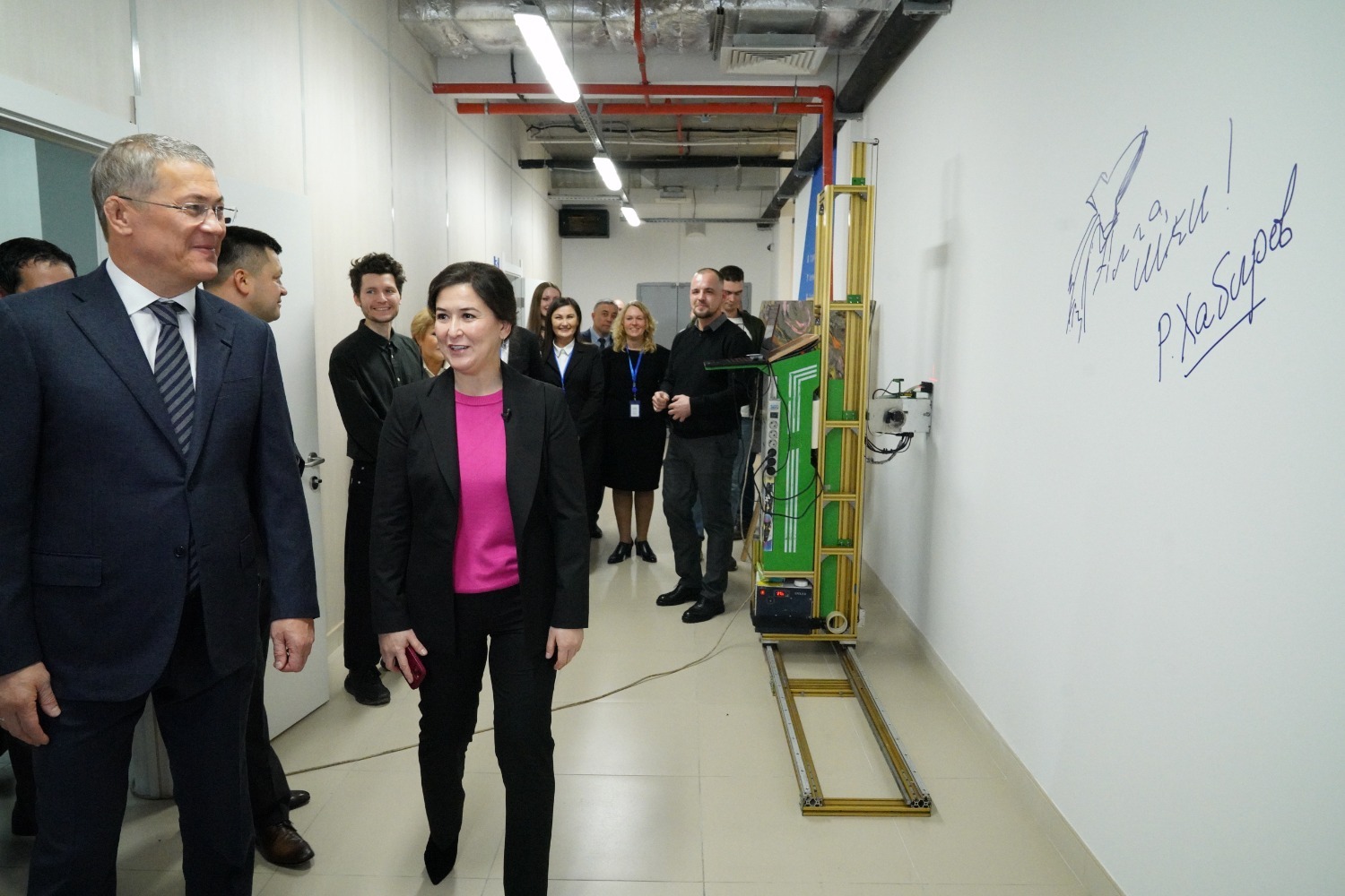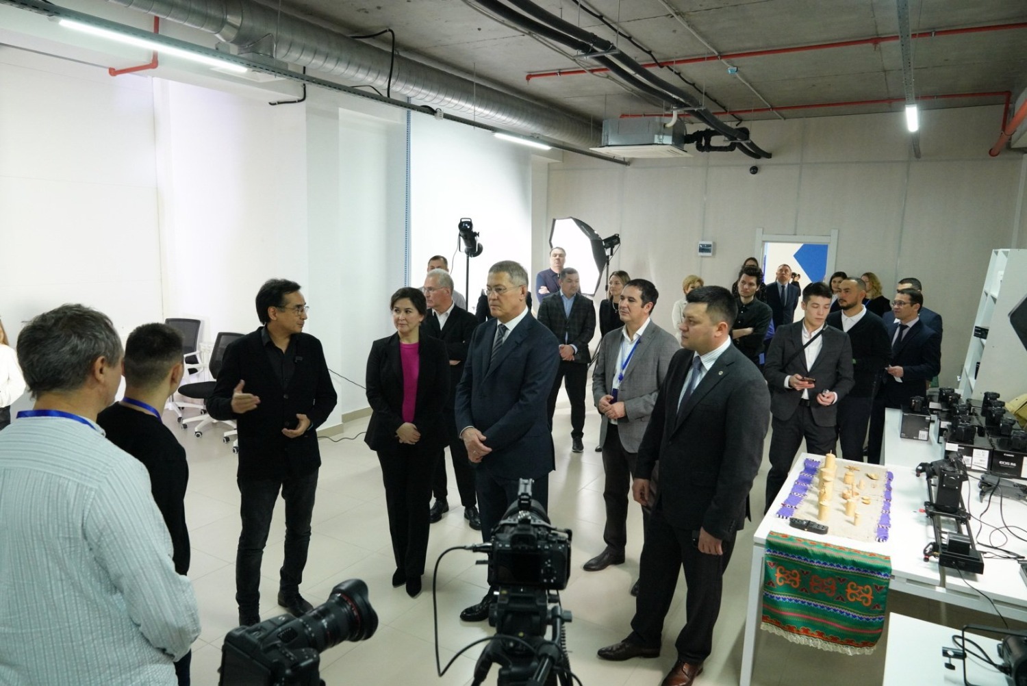 Руководитель региона дал старт работе школы креативных индустрий символическим добавлением завершающего элемента пирамиды в форме сердца. Затем Радий Хабиров осмотрел образовательные площадки нового учреждения.