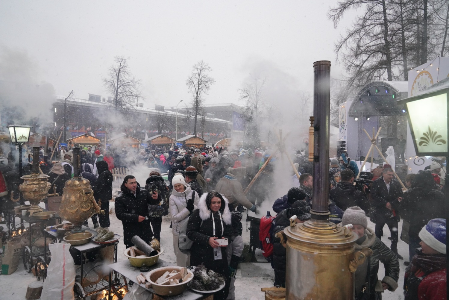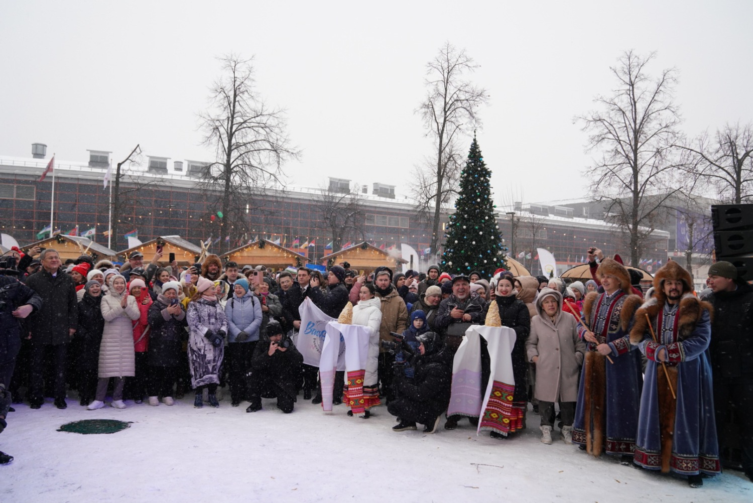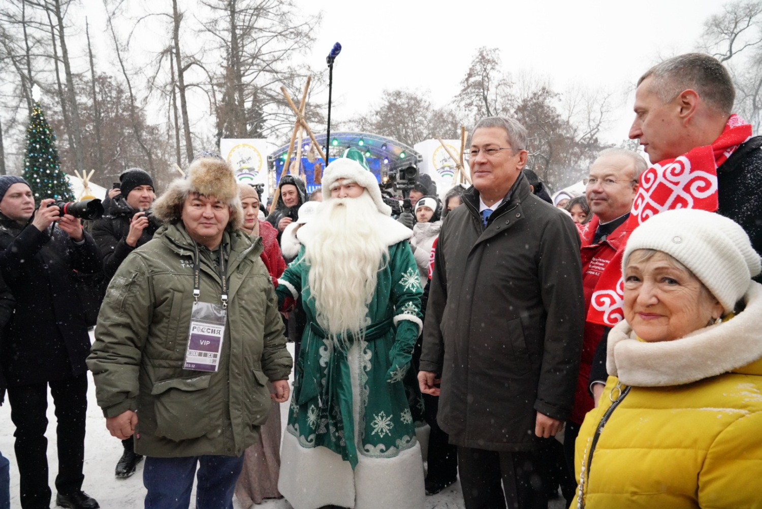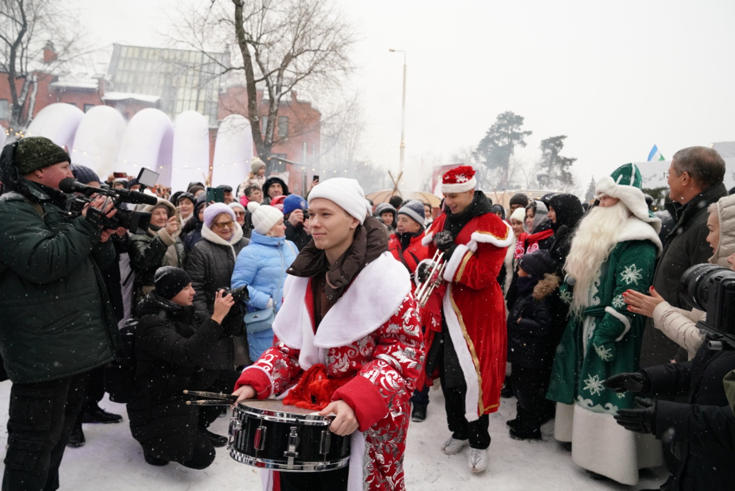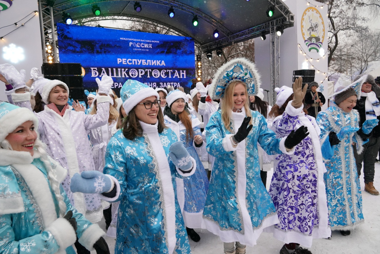 Глава республики дал старт параду 100 снегурочек. Посетители выставки могут с ними закружится в веселом хороводе. Снегурочки также приглашают самых юных гостей в новогодний дом Кыш-Бабая — башкирского Деда Мороза. На уличной площадке также проходит «Зимний сабантуй» — традиционный для башкир летний праздник превратился в зимние народные забавы для взрослых и детей. Всех гостей на улице угощают горячим башкирским чаем.