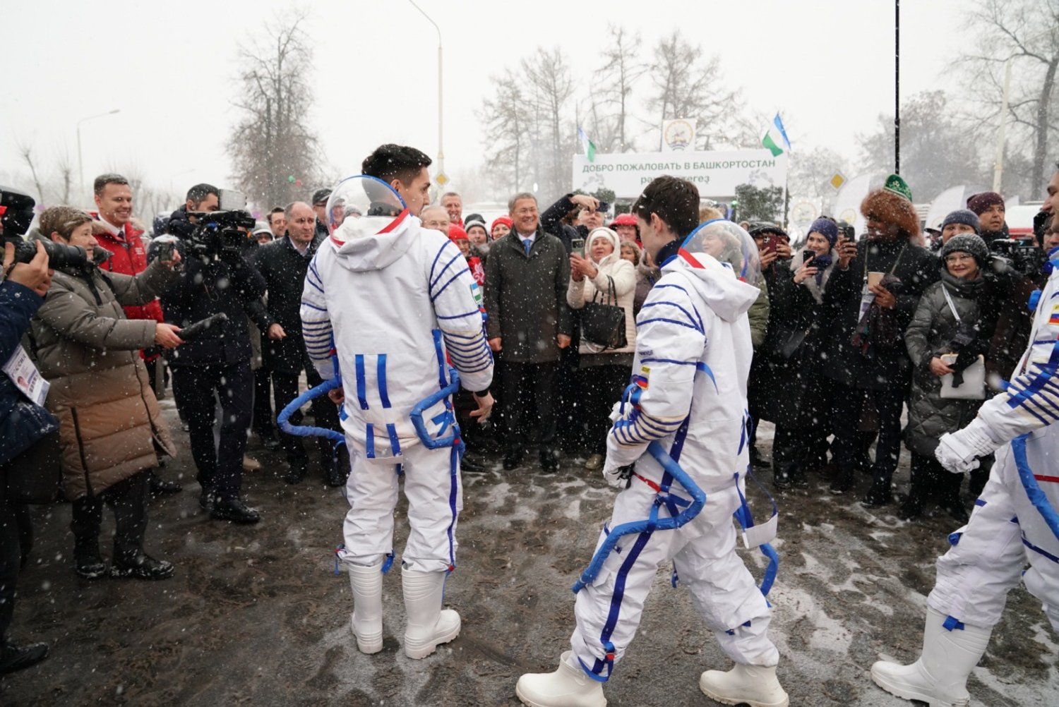 Радий Хабиров вместе с Чрезвычайным и Полномочным послом Республики Беларусь в Российской Федерации Дмитрием Крутым понаблюдал за началом обряда национальной башкирской свадьбы. Церемония свадьбы ожидается ближе к обеду. На выставку на легендарном автомобиле «Чайка» также прибыли башкирские актеры, переодетые в костюмы космонавтов. До этого они вместе с космическим медведем прошли по известным местам Москвы и обратились к гостям и жителям столицы с вопросом о том, как пройти к выставке на ВДНХ, где приземлился космолет из Башкортостана.