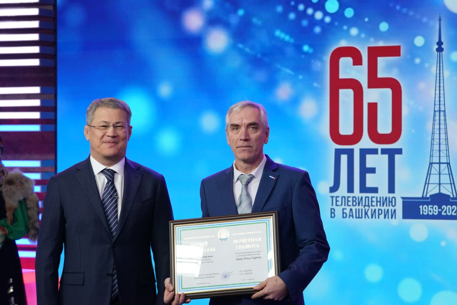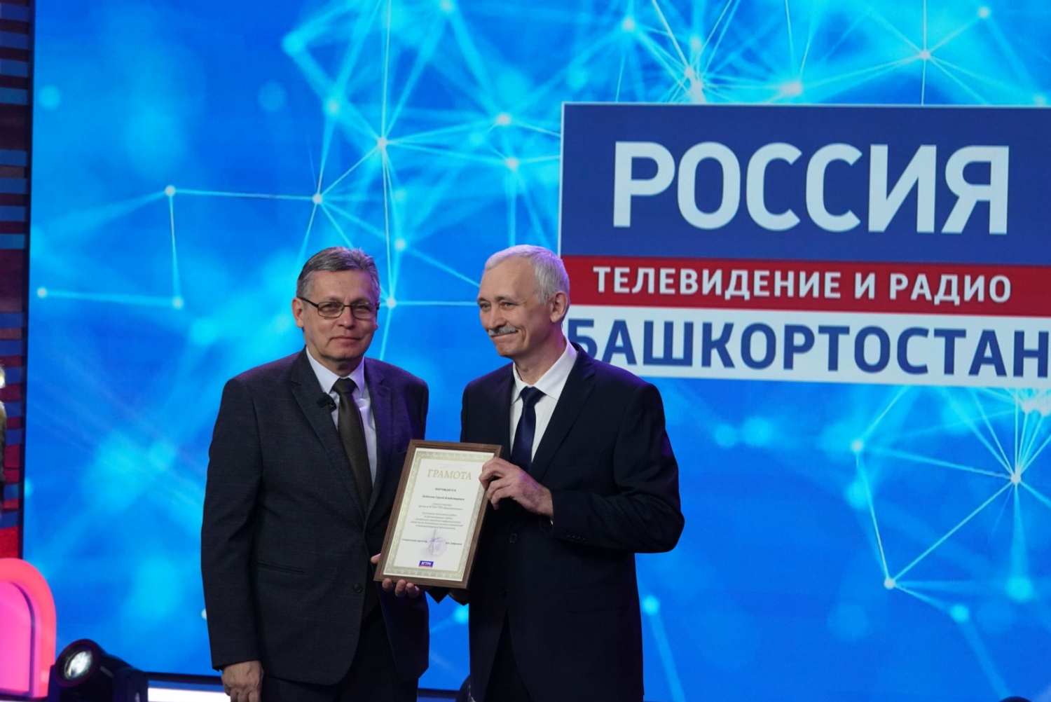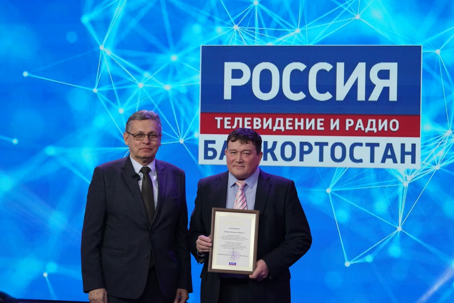 Радий Хабиров вручил государственные награды республики ряду сотрудников ГТРК «Башкортостан». Почетной грамоты РБ удостоен оператор информационной службы Вадим Зараев. Звания «Заслуженный работник печати и массовой информации РБ» удостоились заместитель начальника службы информационных программ телевидения Алексей Агров и заместитель директора ГТРК «Башкортостан» Вильдан Галин.