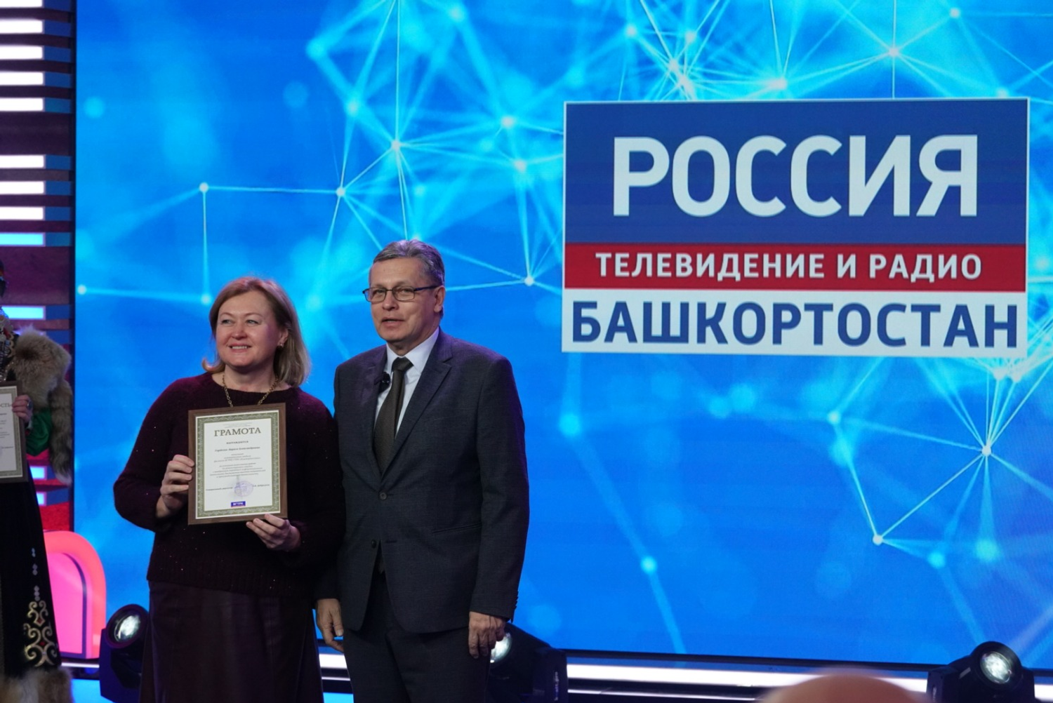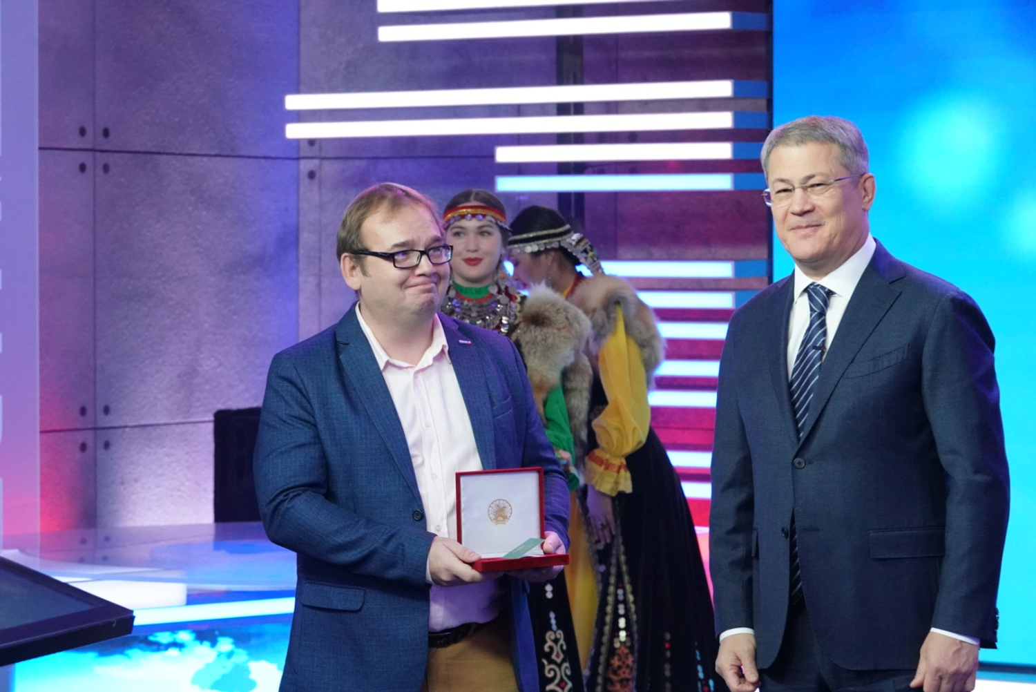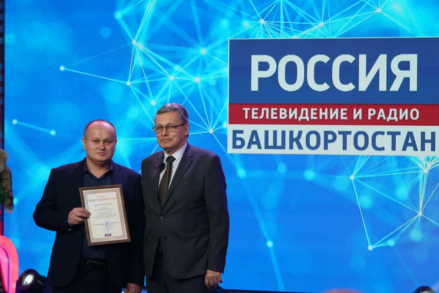 Радий Хабиров вручил государственные награды республики ряду сотрудников ГТРК «Башкортостан». Почетной грамоты РБ удостоен оператор информационной службы Вадим Зараев. Звания «Заслуженный работник печати и массовой информации РБ» удостоились заместитель начальника службы информационных программ телевидения Алексей Агров и заместитель директора ГТРК «Башкортостан» Вильдан Галин.