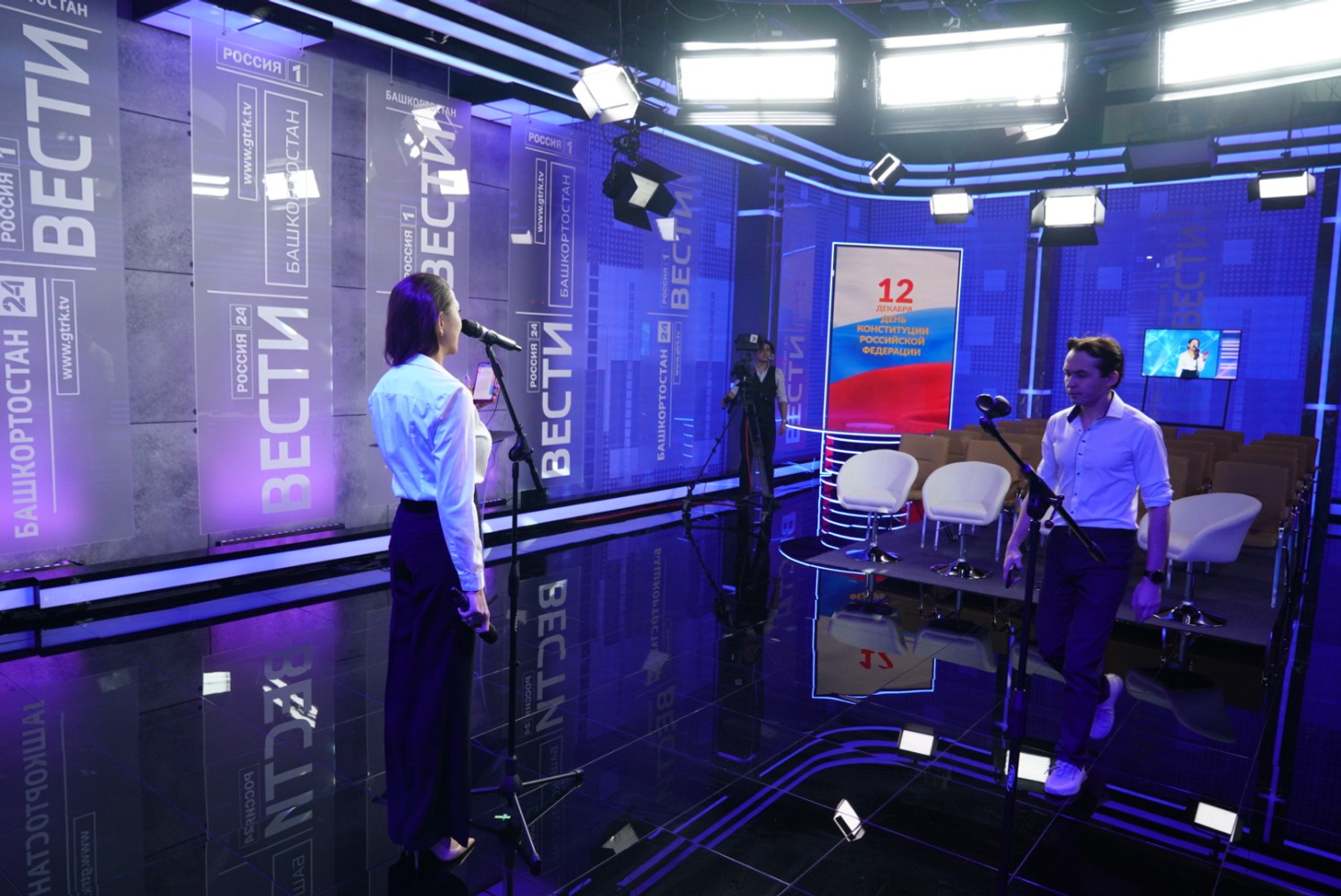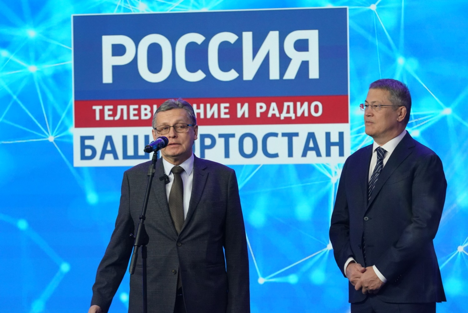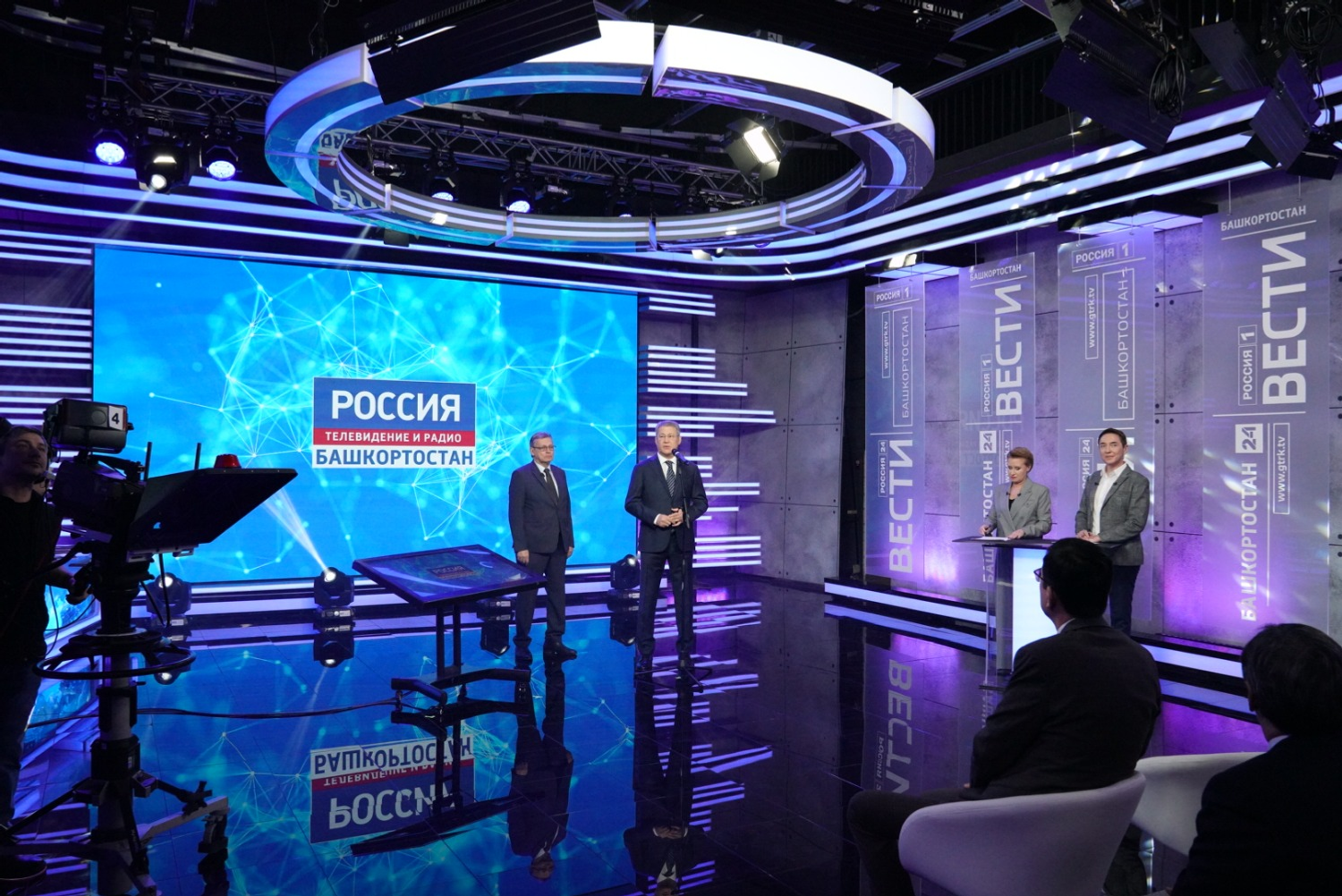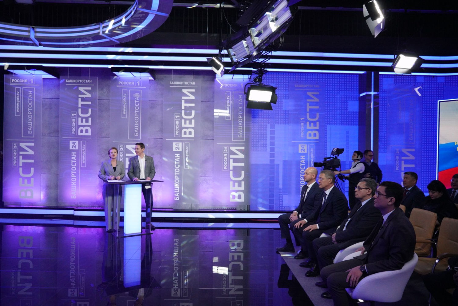 Глава Башкортостана, заместитель генерального директора ВГТРК и директор ГТРК «Башкортостан» Азамат Салихов нажали символическую кнопку, тем самым дав старт работе обновленной студии.