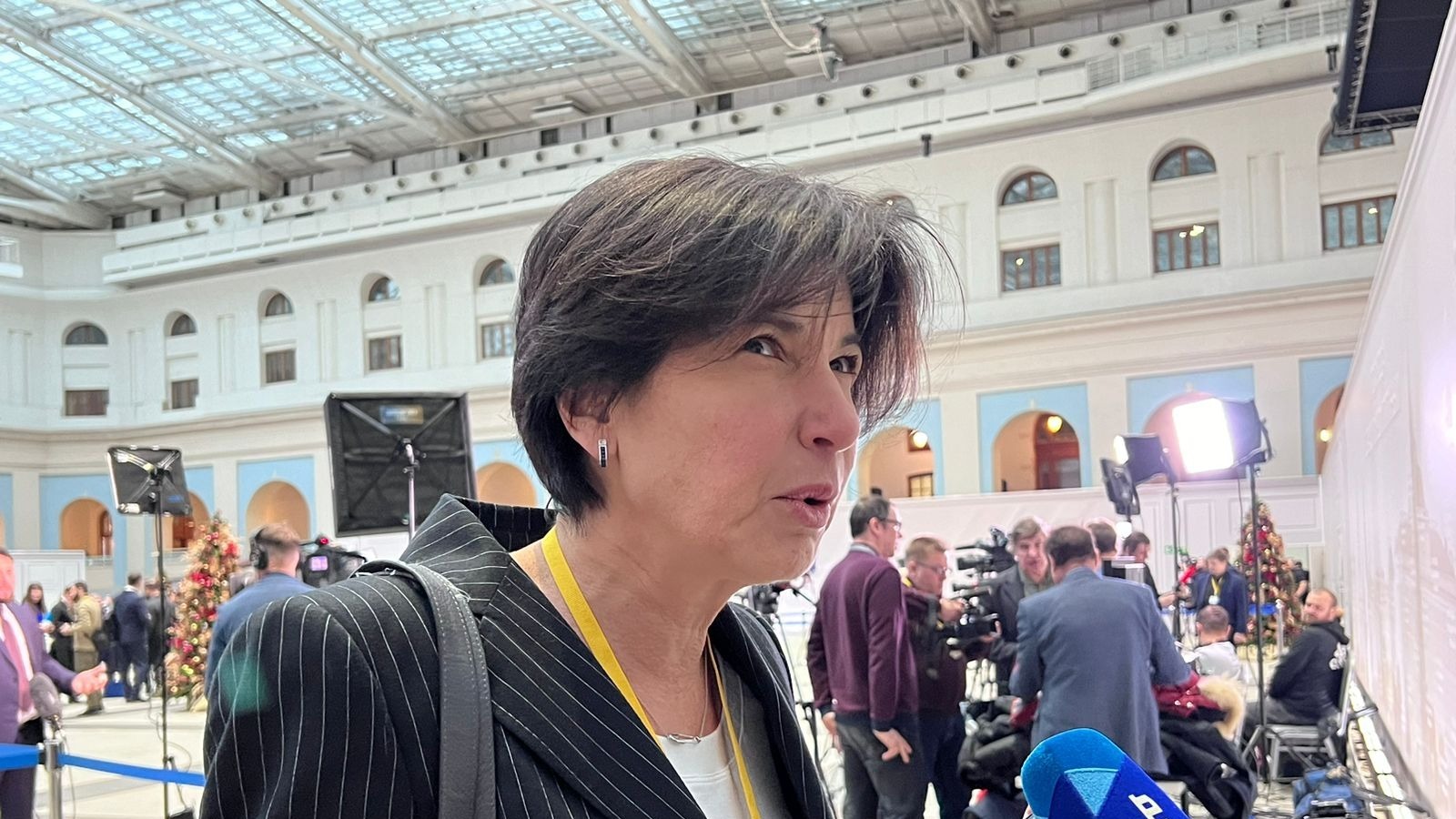 «Я всегда хочу слышать умные вопросы. Чтобы это действительно был разговор о самом важном. На последней пресс-конференции два года назад я просто выбесилась. Журналисты задавали этакие „шкурные“ вопросы от губернаторов. Я подумала: ну ребята, у вас ведь есть шанс спросить и о чём-то реально важном, понять что-то важное — куда мы дальше идём, с кем, какие настроения. И вдруг слышишь такое: "мой губернатор попросил меня передать"… Ну как так можно. Зачем так мелочиться. Вопросы должны быть те, что волнуют людей, о настоящих проблемах. А не так, что, мол, мы тебя в Москву отправили, а ты там скажи, какой я хороший губернатор», — сказала ведущая программы «Итоги недели».