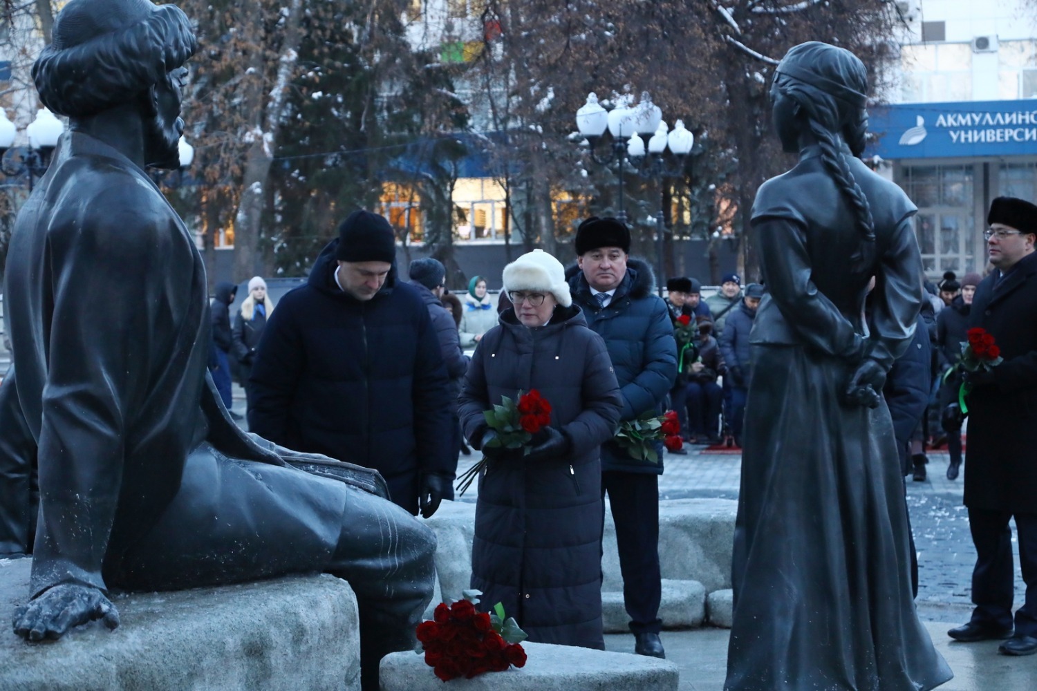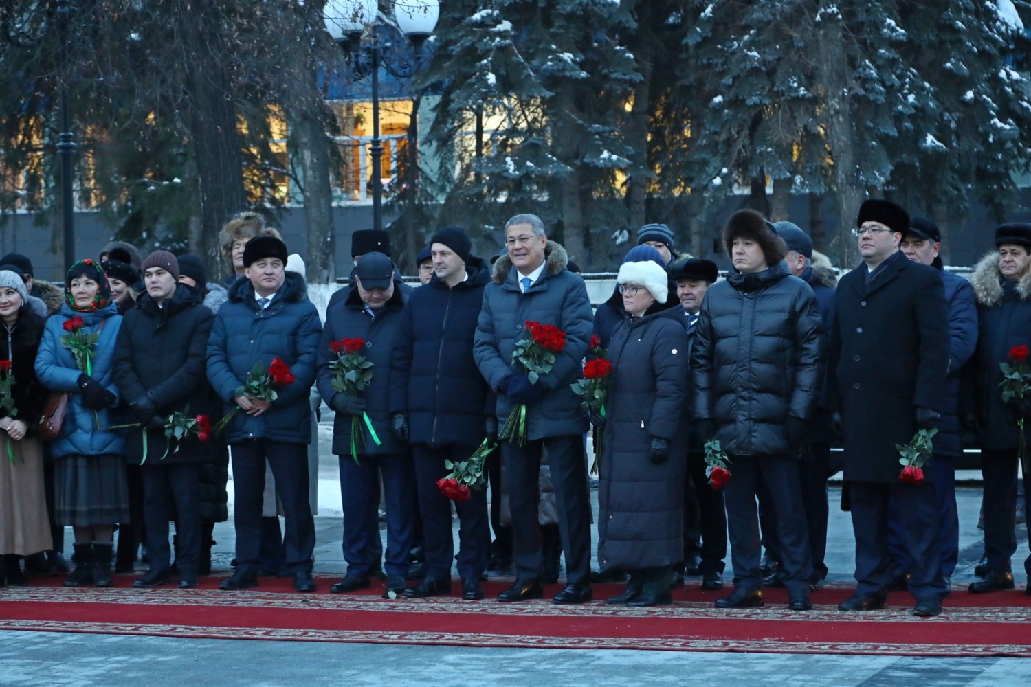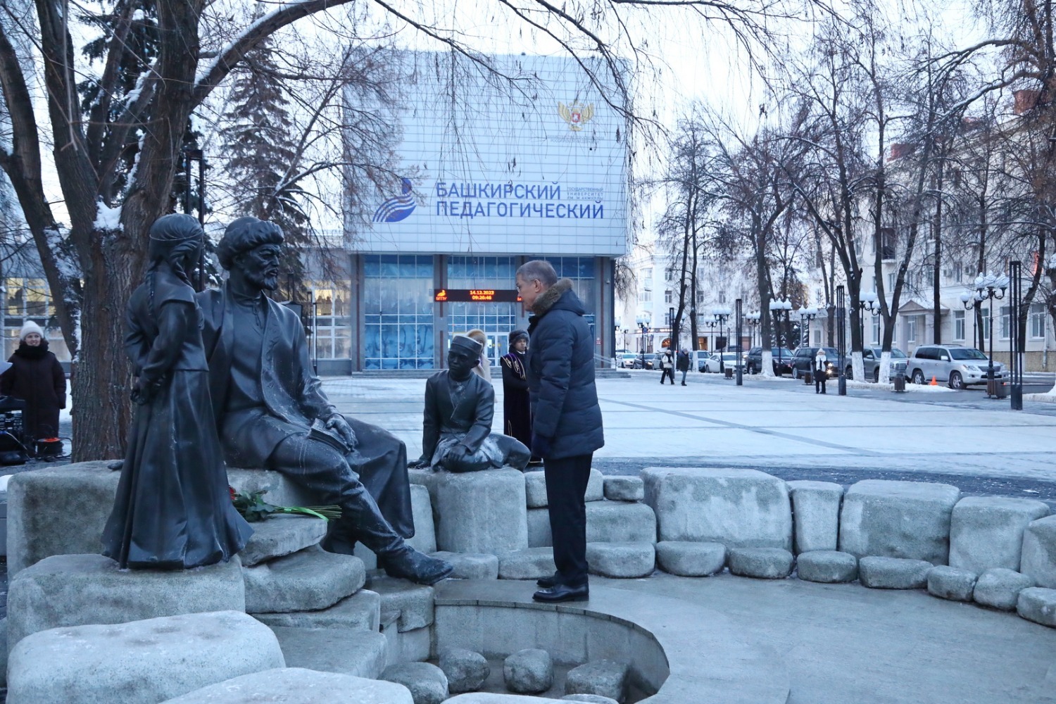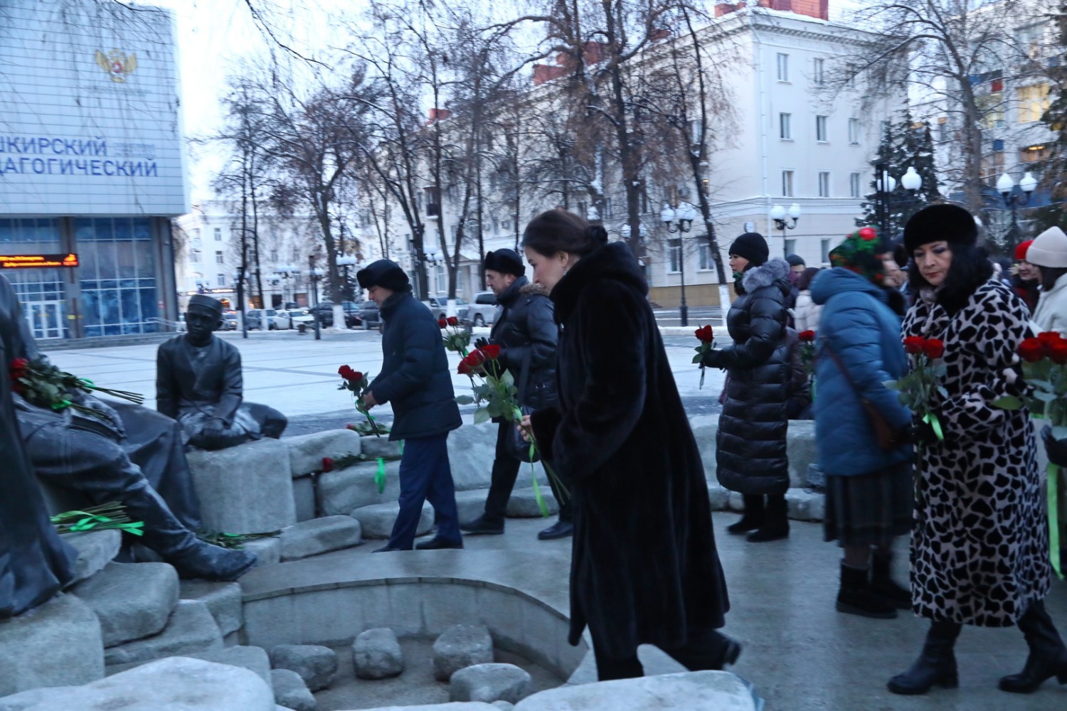 В церемонии возложения цветов приняли участие Глава Башкирии Радий Хабиров, руководитель администрации Главы РБ Максим Забелин, первый заместитель руководителя администрации Главы РБ Урал Кильсенбаев, министр культуры республики Амина Шафикова, министр образования и науки РБ Ильдар Мавлетбердин, заместитель председателя Госсобрания Башкирии Тамара Тансыккужина, а также известные писатели и поэты, общественные деятели, студенты педуниверситета.