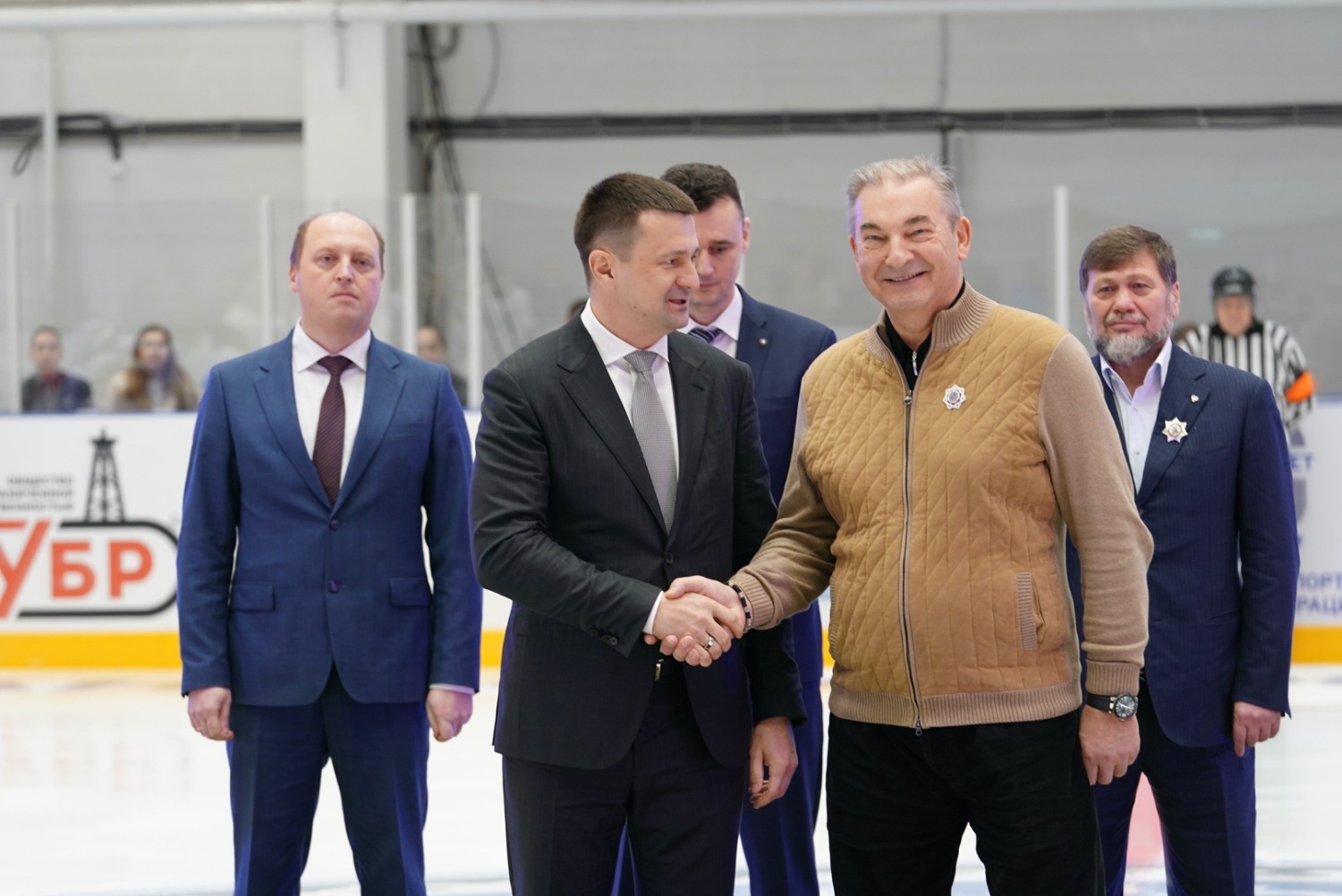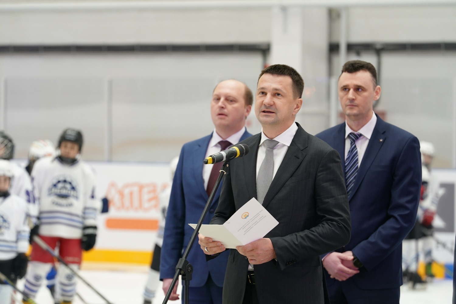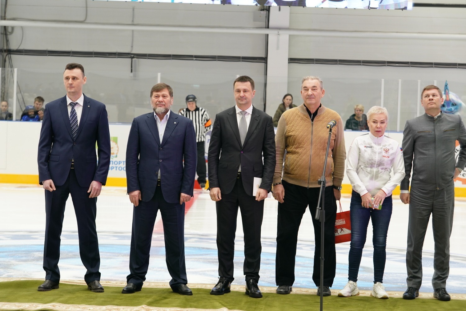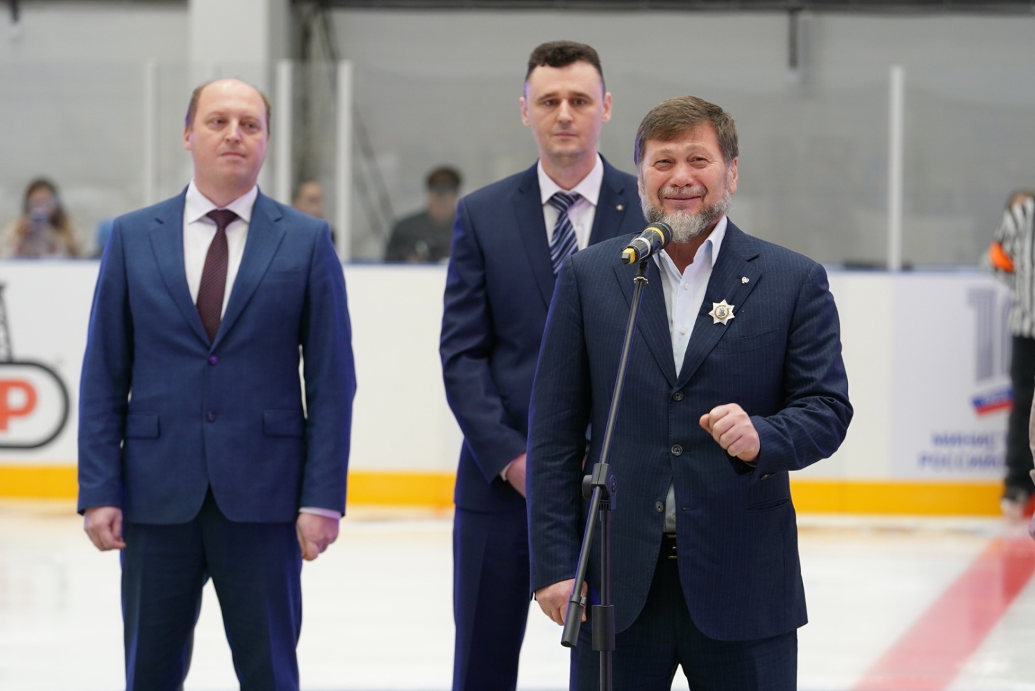 «От имени наших жителей республики, от имени Главы Республики Башкортостан, Правительства мы сегодня открываем в Октябрьском нашу замечательную Ледовую арену. Поздравляю всех вас с этим прекрасным новогодним подарком! Мы благодарим за поддержку наших инициатив заместителя министра спорта России Одеса Хасаевича Байсултанова и президента Федерации хоккея, трехкратного олимпийского чемпиона, легендарного Владислава Александровича Третьяка. Спасибо вам большое! С вашей помощью мы решаем задачу, поставленную президентом нашей страны – создать условия для занятий спортом и укрепления здоровья каждого россиянина. Важный объект для города и республики построен в рамках большой программы, которую реализует ПАО «Роснефть», ПАО «Башнефть», «Роснефть – детям». И мы благодарны за поддержку, которую нам оказывает «Роснефть» и «Башнефть», за развитие спорта, социальной инфраструктуры в нашей республике.