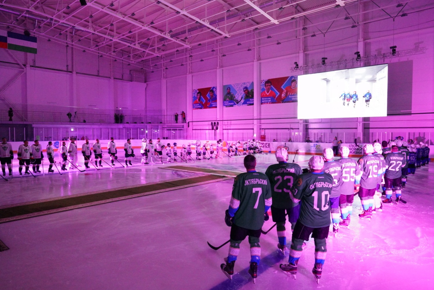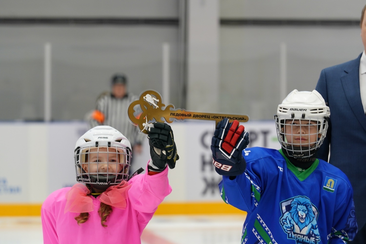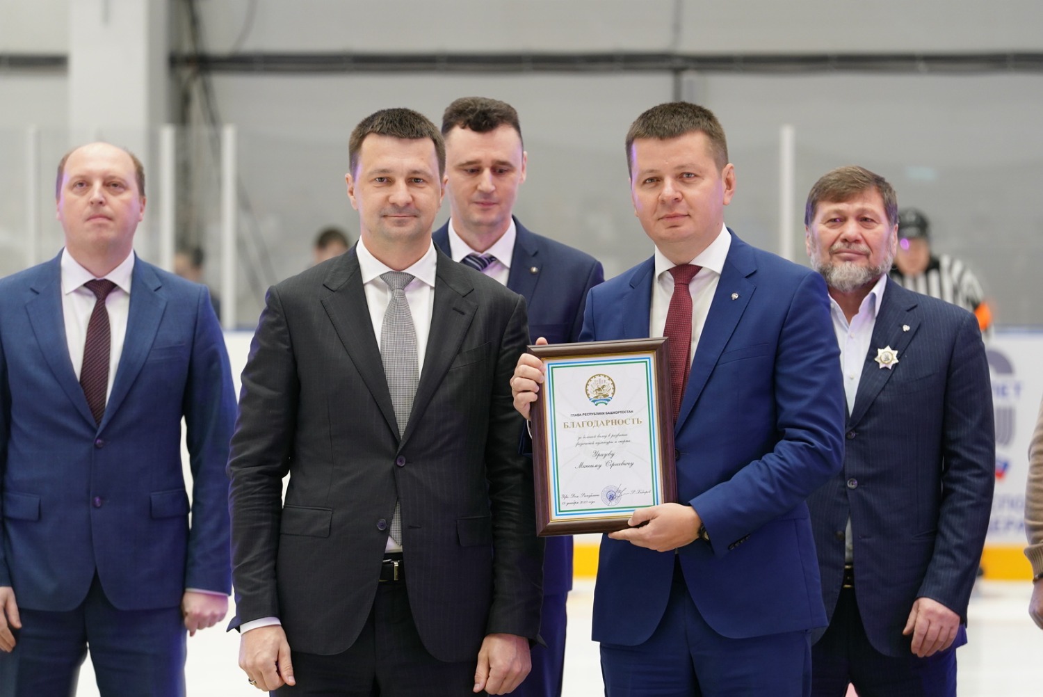 «От имени компании «Башнефть» поздравлю всех с открытием первого в истории города Октябрьского Ледового дворца. Уверен, что этот спортивный комплекс станет любимым местом здорового досуга для жителей города, для взрослых, для молодёжи – потому что хоккей очень популярный вид спорта у нас в республике. Теперь жители города получили возможность круглый год заниматься любимым видом спорта на специализированной, оборудованной площадке. А город получил возможность полноценно проводить соревнования по этому виду спорта, что, конечно, увеличит количество желающих среди подрастающего поколения взять в руки клюшку и встать на лёд, осваивать и оттачивать навыки этой замечательной игры.