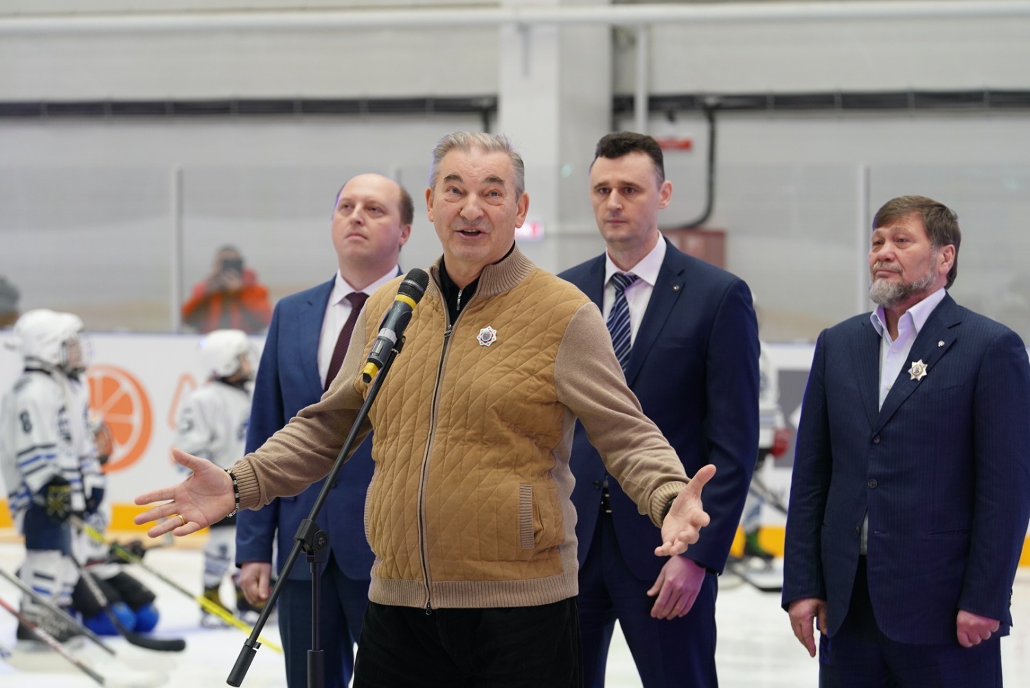 «Для меня большая честь сегодня от имени Федерации поздравить всех с большим праздником! Это праздник хоккея. Сегодня это 701-й хоккейный стадион, который действует в нашей стране. Вы знаете, что Россия – это спортивная держава. И мы в нашей стране проводим очень много соревнований, олимпийских игр, чемпионатов мира по разным видам спорта, универсиады. Для чего мы это все делаем? Для того чтобы привлечь как можно больше молодежи на спортивные площадки, чтобы здоровый образ жизни стал частью культуры каждого человека. Чтобы через спорт мы воспитывали патриотов своей страны, патриотов любви к своей стране. И сегодня, пользуясь случаем, еще раз хотел сказать слова благодарности Главе республики, правительству за такой прекрасный подарок для нашего вида спорта, хоккея. Хоккей у нас очень популярный вид спорта. Президент Владимир Владимирович у нас играет в хоккей. Мы – неоднократно олимпийские чемпионы мира. Надеемся, что на этом льду вырастут новые Овечкины, Харламовы, которые прославят и вашу республику, и нашу всю страну! С наступающим Новым годом! Вам здоровья, счастья и любви», - сказал Владислав Третьяк.