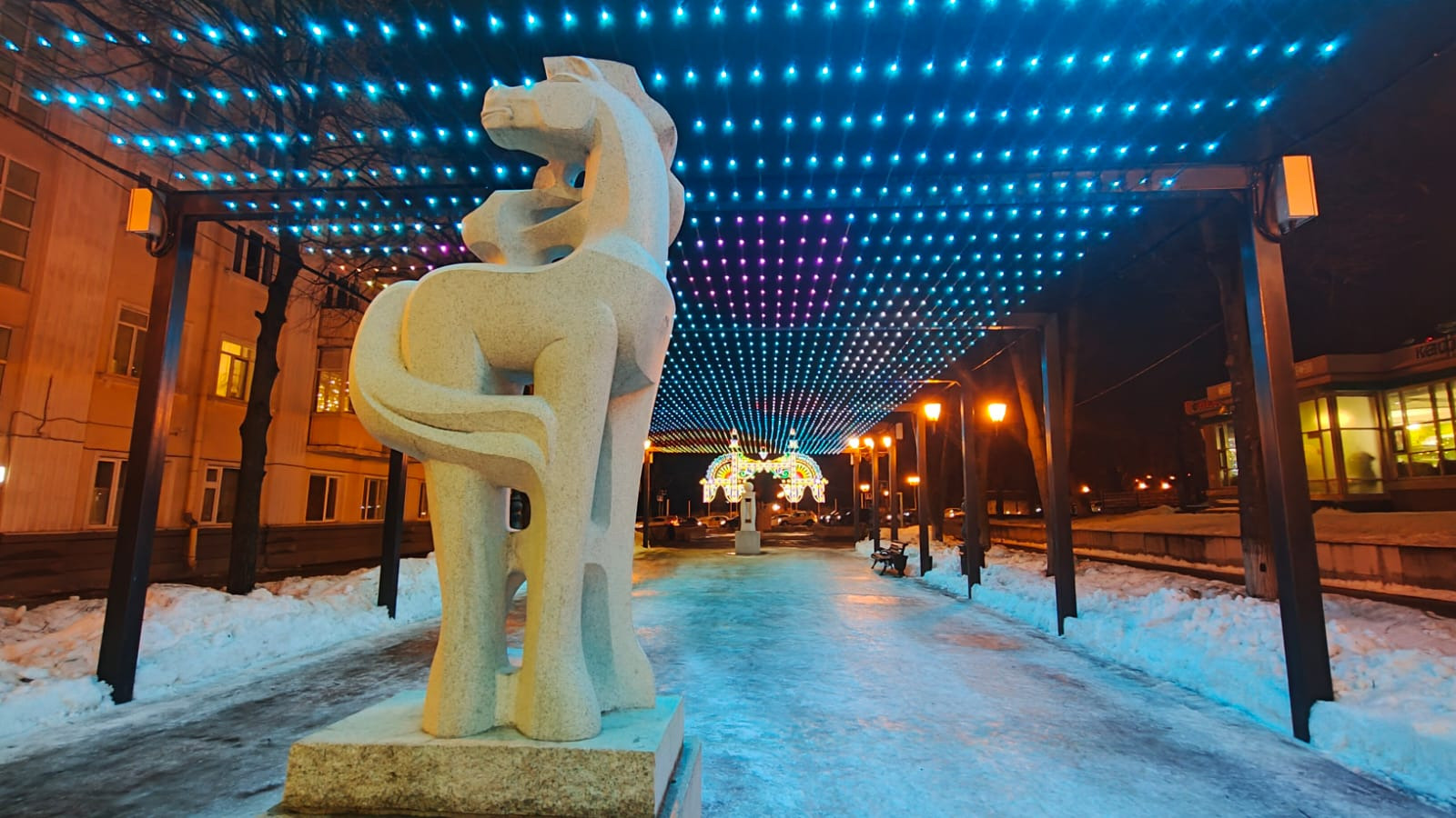 В Уфе заработала новогодняя иллюминация на улице Ленина. Монтаж гирлянд завершился несколько дней назад, но ей потребовалась настройка и отладка системы управления. Каждый пиксель подсветки управляется индивидуально, что позволяет создавать любые орнаменты, узоры, праздничную символику и даже тексты.