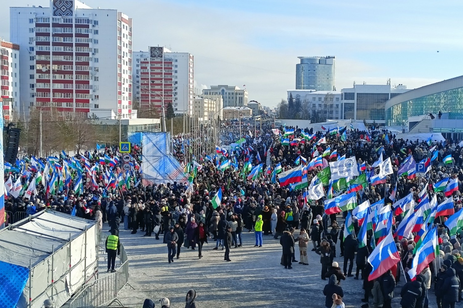 В Уфе сегодня, 26 января, прошел патриотический концерт за многонациональный, единый Башкортостан. По информации организаторов, на площади Салавата Юлаева собрались более 50 тысяч жителей республики из разных районов и городов. Для них выступали легенды и звезды башкирской эстрады: Фидан Гафаров, Рустам Гиззатуллин, Дияна Ишниязова, Ильнур Хайруллин, Тимур Рамазанов, этно-проект «Зайнетдин», Загит Кунафин (MC Bash), проект «Дарман», группы «Павильон», «Караван-сарай» и другие. Приветствуя зрителей, артисты поделились, почему они поддерживают действующую политику в республике.